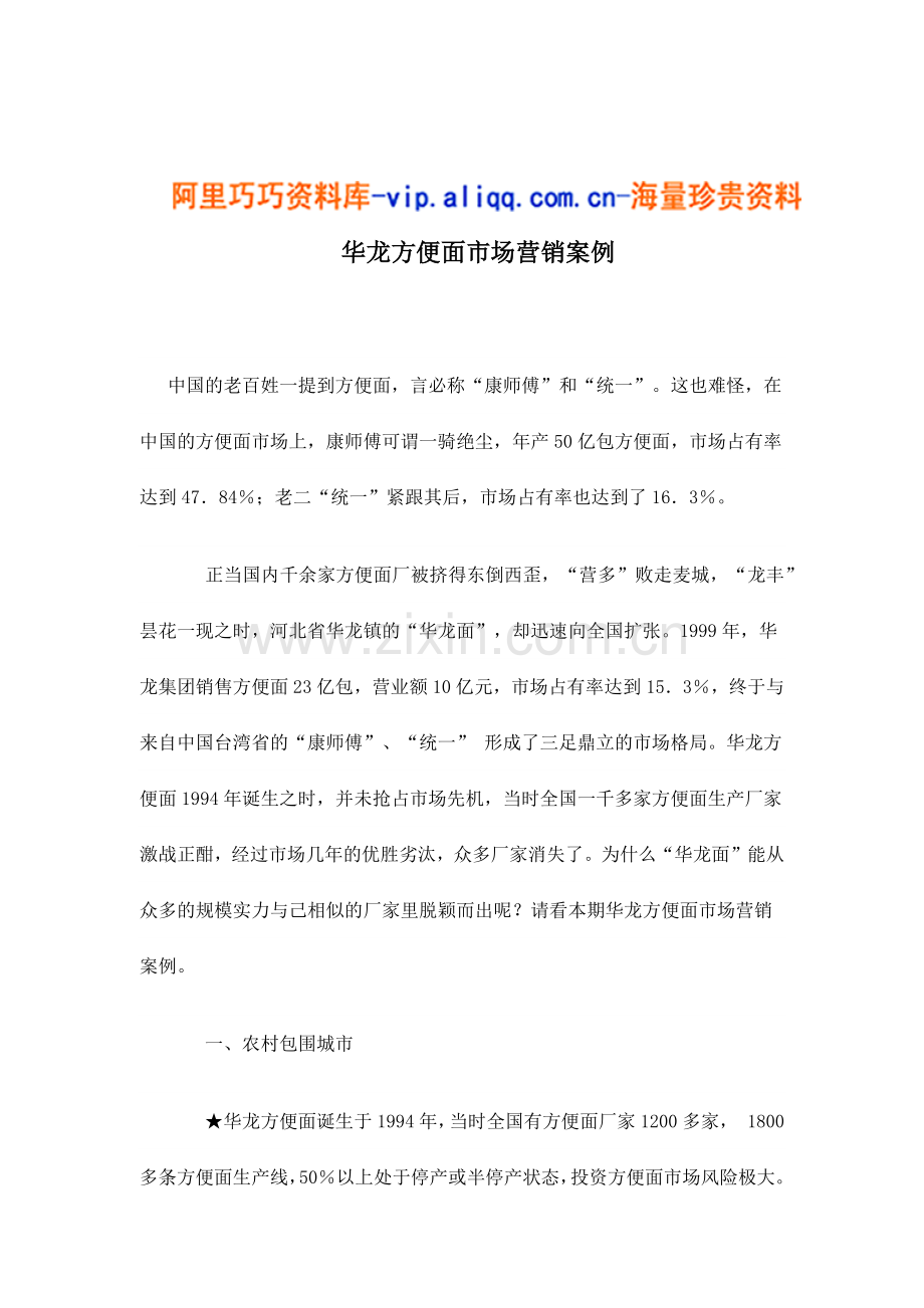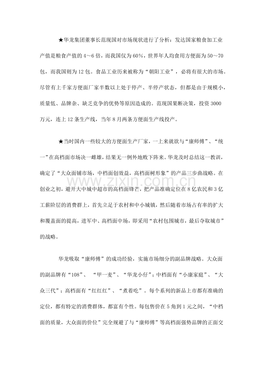 华龙方便面市场营销案例