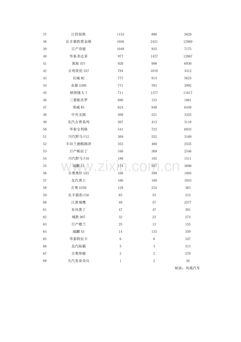 2013年7月全国SUV销量排名
