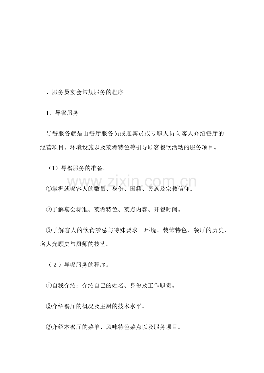 ②了解宴会标准、菜肴特色、菜点内容、开餐时间。