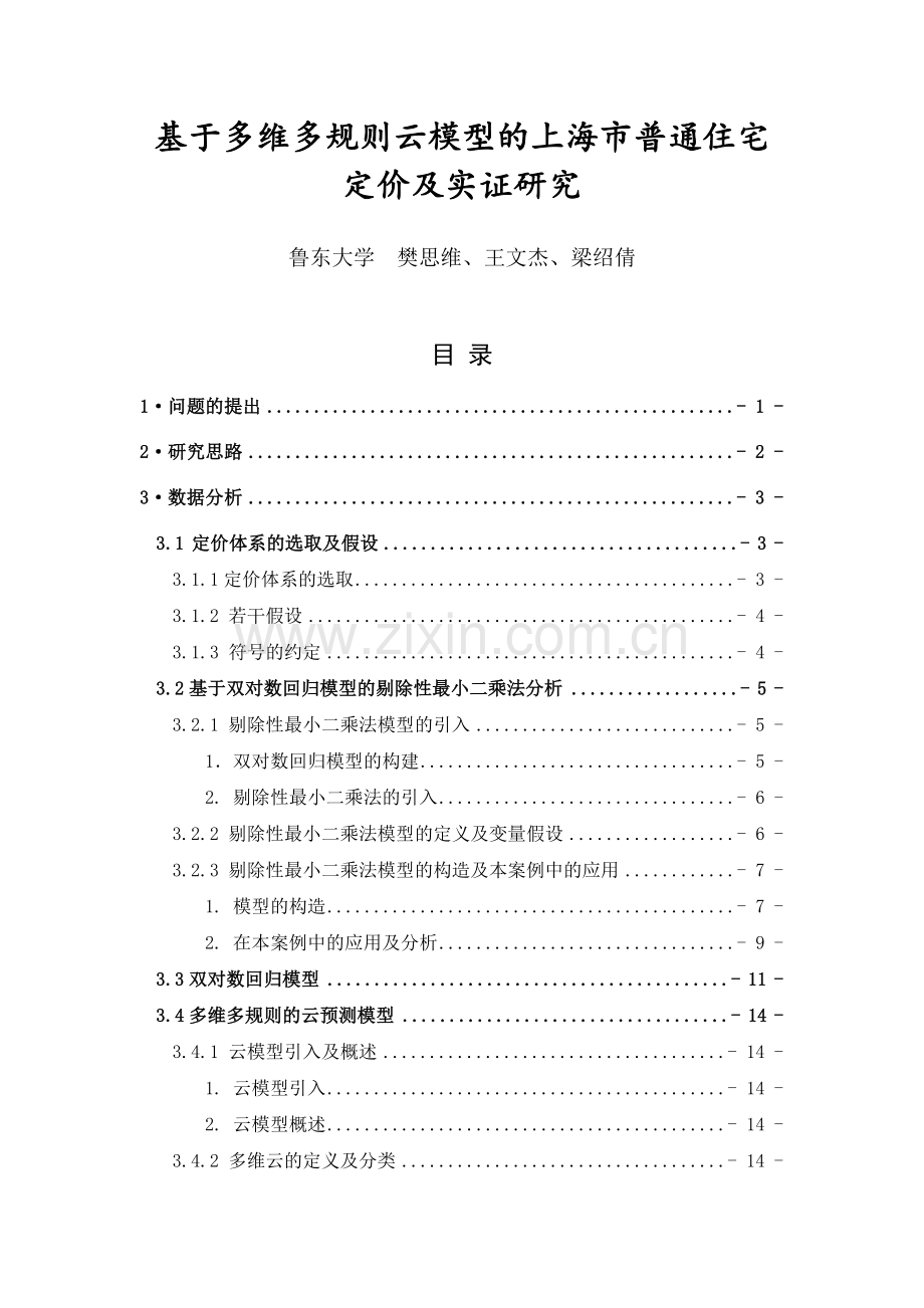 基于多维多规则云模型的上海市普通住宅定价及实证研究