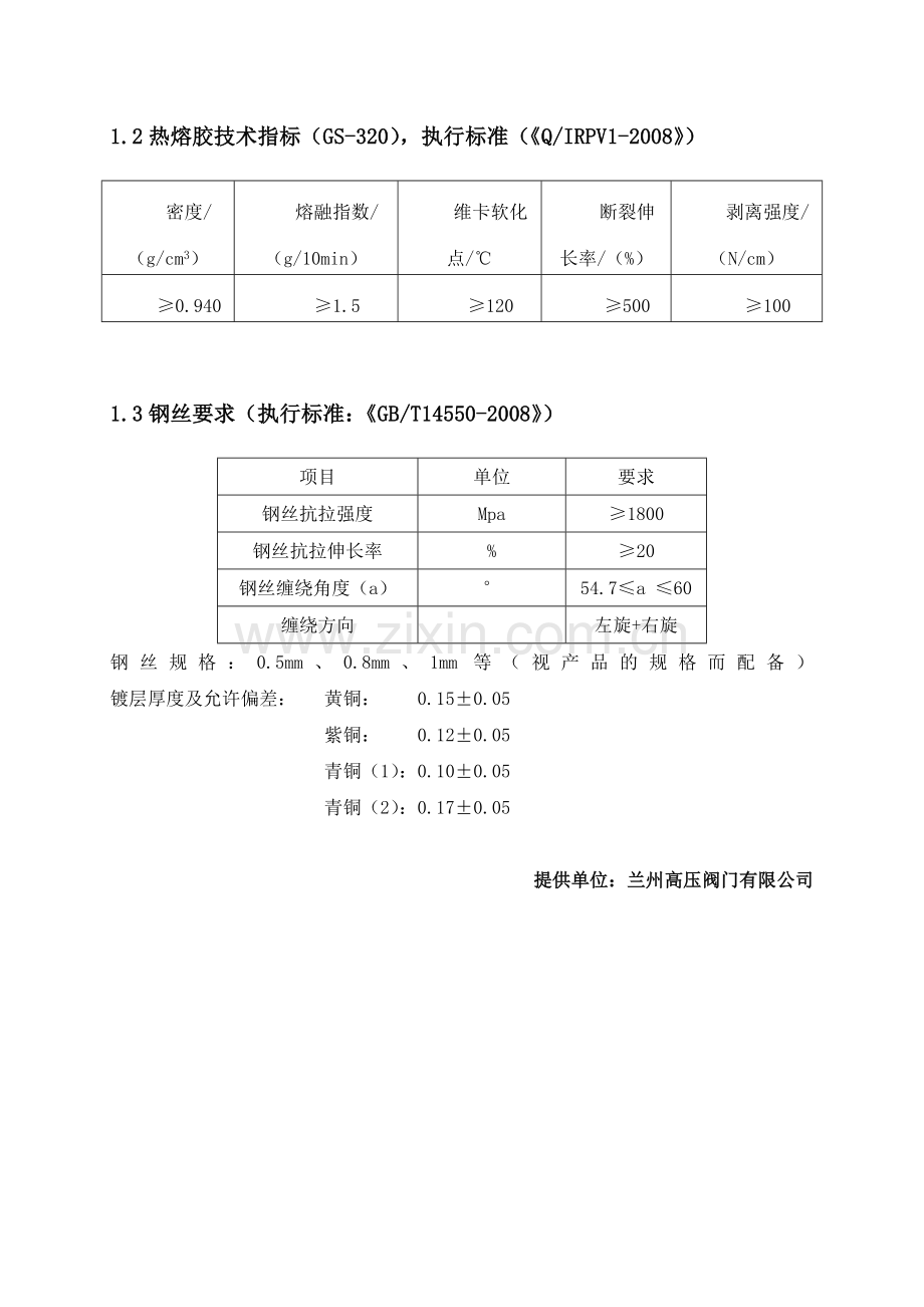 1.2热熔胶技术指标(GS-320),执行标准(《Q/IRPV1-2008》)