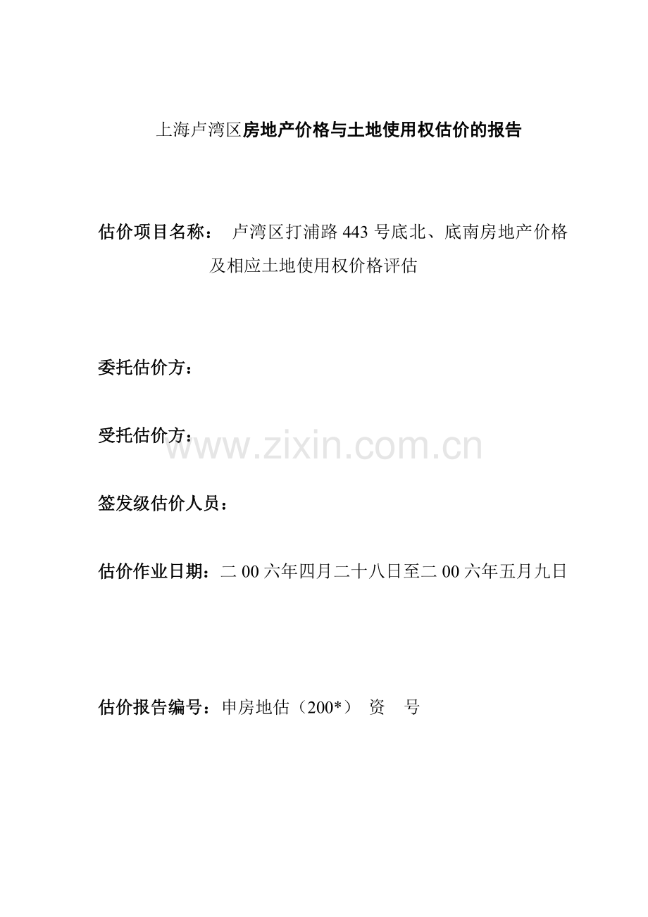 估价项目名称: 卢湾区打浦路443号底北、底南房地产价格及相应土地使用权价格评估
