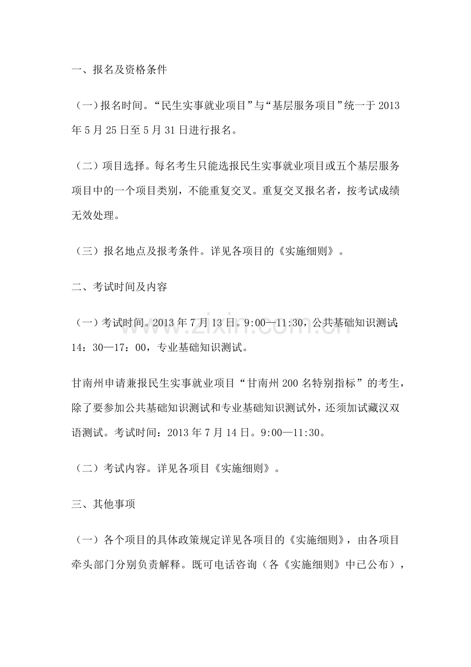 关于统筹实施2013年普通高校毕业生民生实事就业项目和五个基层服务项目的通告