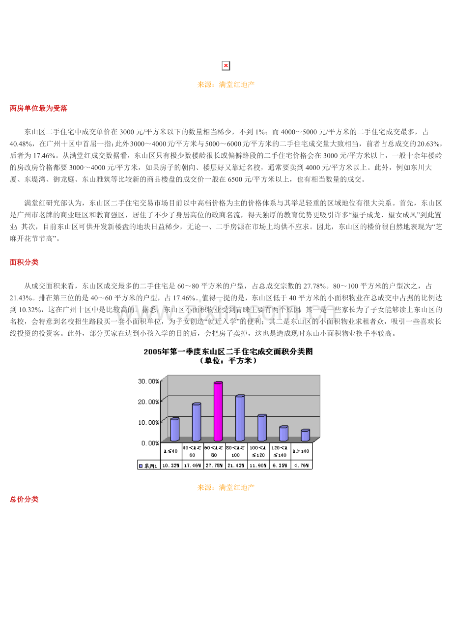 据广州市国土房管局公布的数据,第一季度东山区的二手住宅成交均价为4264元/平方米,比2004年第四季度上升4.3%。根据满堂红地产的成交数据,第一季度东山区的二手热门区域包括有五羊新城、东华西、淘金等,成交中有大约6成为房改房;而一些新的商品楼盘如东川大厦、东山雅筑、富力东堤湾的成交也渐趋活跃,其成交价一般与一手售价相差很少,甚至高于一手楼价,显示置业者对东山楼市的前景相当有信心。