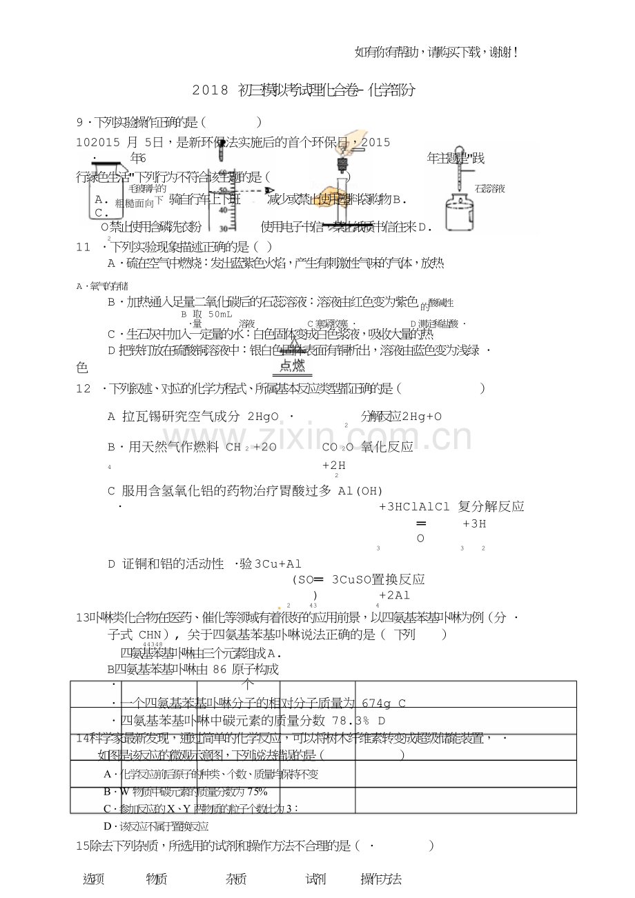 2018 初三模拟考试理化合卷- 化学部分