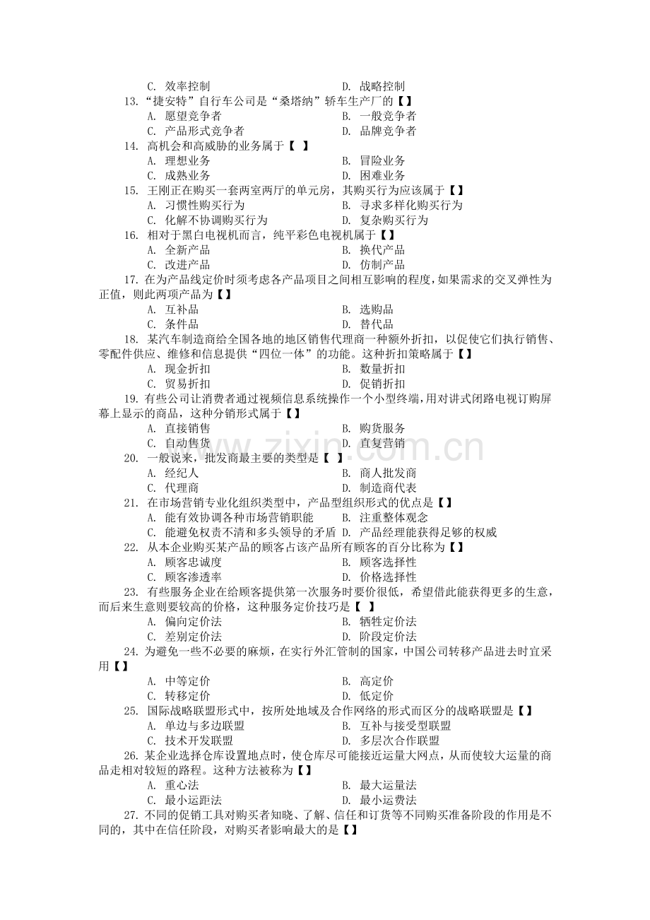 1. 夏季,“波司登”羽绒服通过打折等促销措施而出现了淡季热销的局面。可见,该厂家深刻领悟到羽绒服的需求属于A. 潜伏需求 B. 充分需求