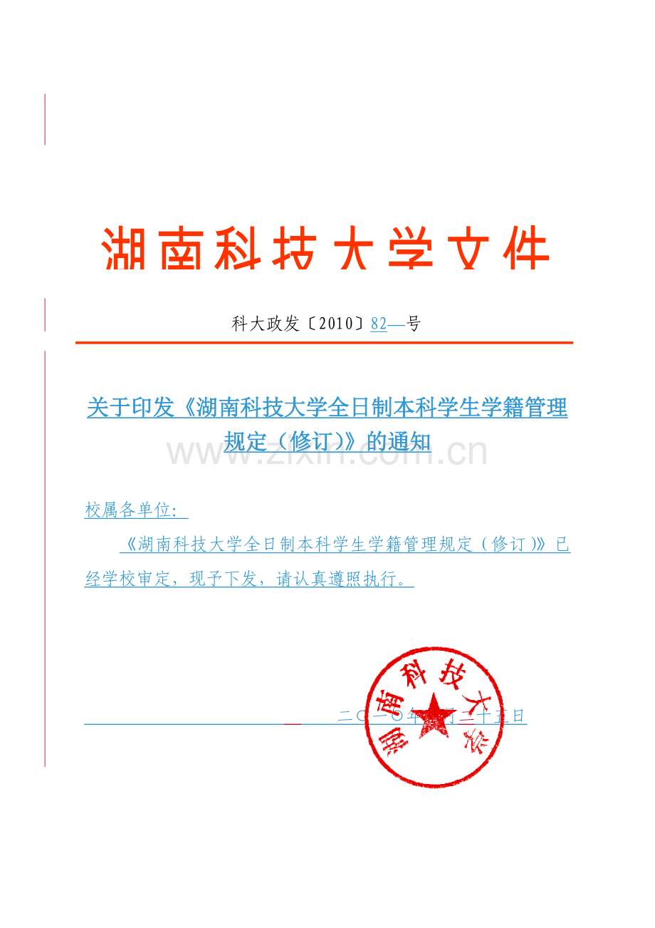 关于印发《湖南科技大学全日制本科学生学籍管理规定(修订)》的通知