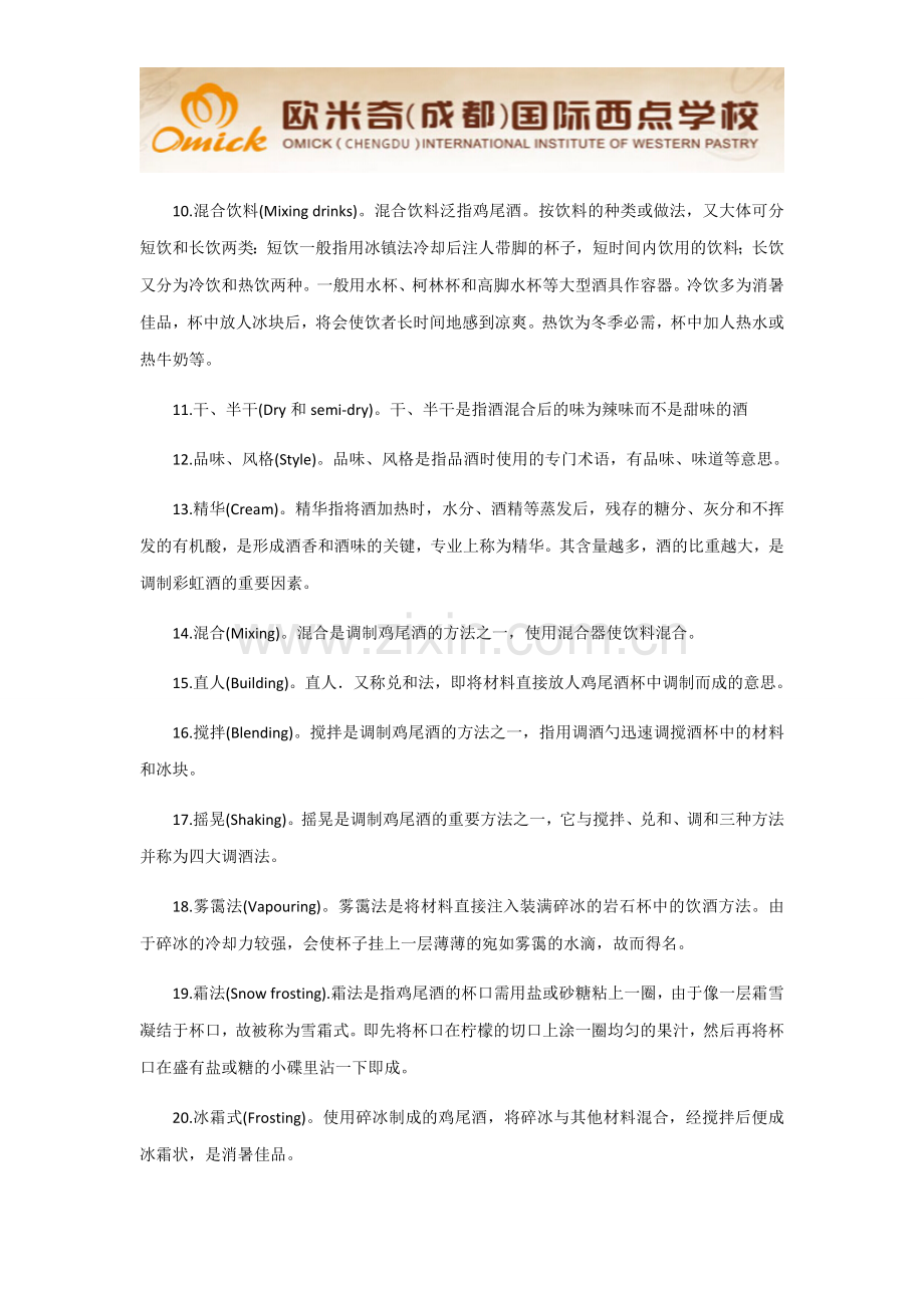 11.干、半干(Dry和semi-dry)。干、半干是指酒混合后的味为辣味而不是甜味的酒