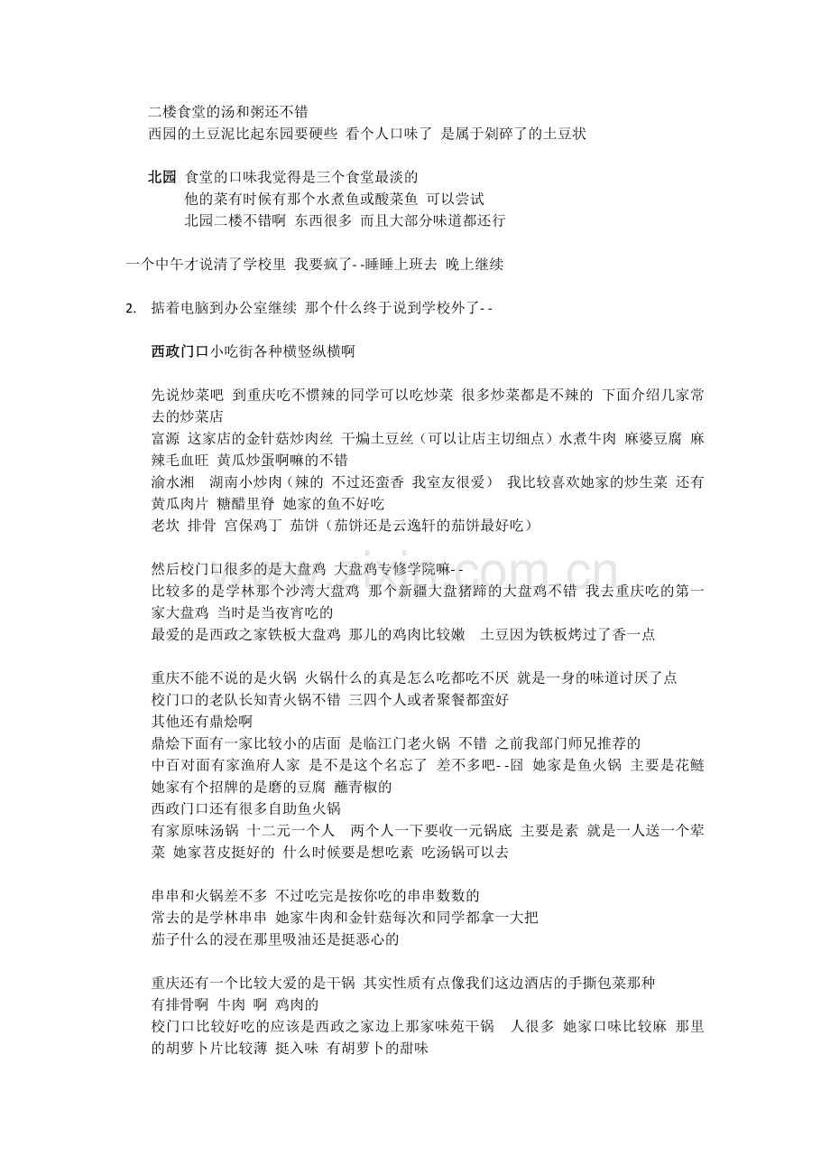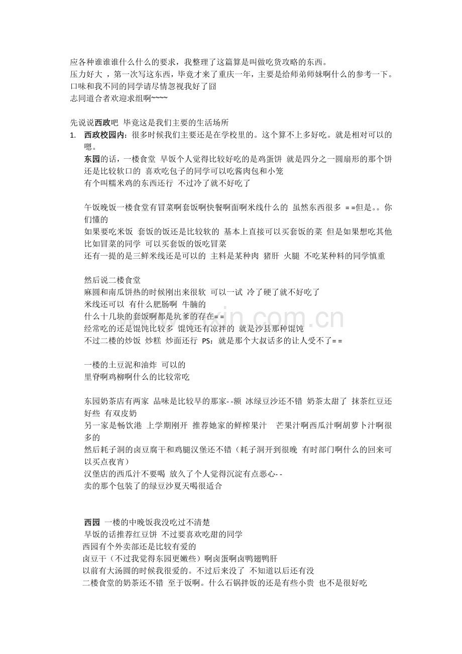 1. 西政校园内:很多时候我们主要还是在学校里的。这个算不上多好吃。就是相对可以的嗯。