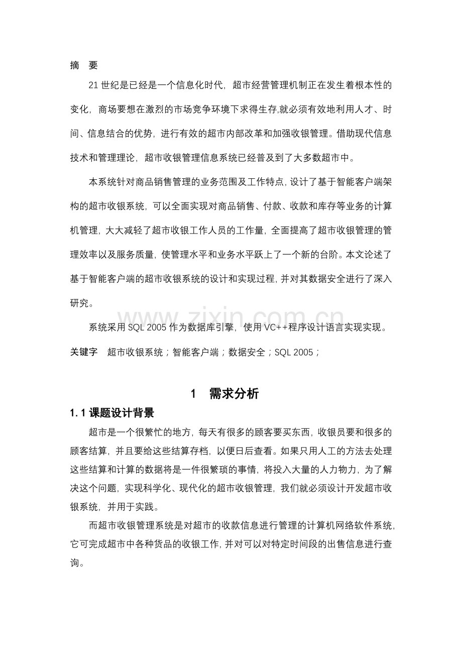 关键字 超市收银系统;智能客户端;数据安全;SQL 2005;