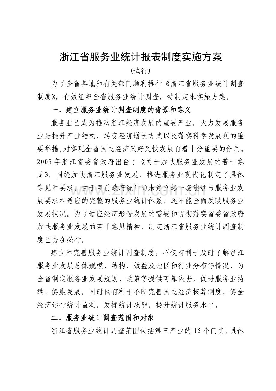 浙江省服务业统计报表制度实施方案