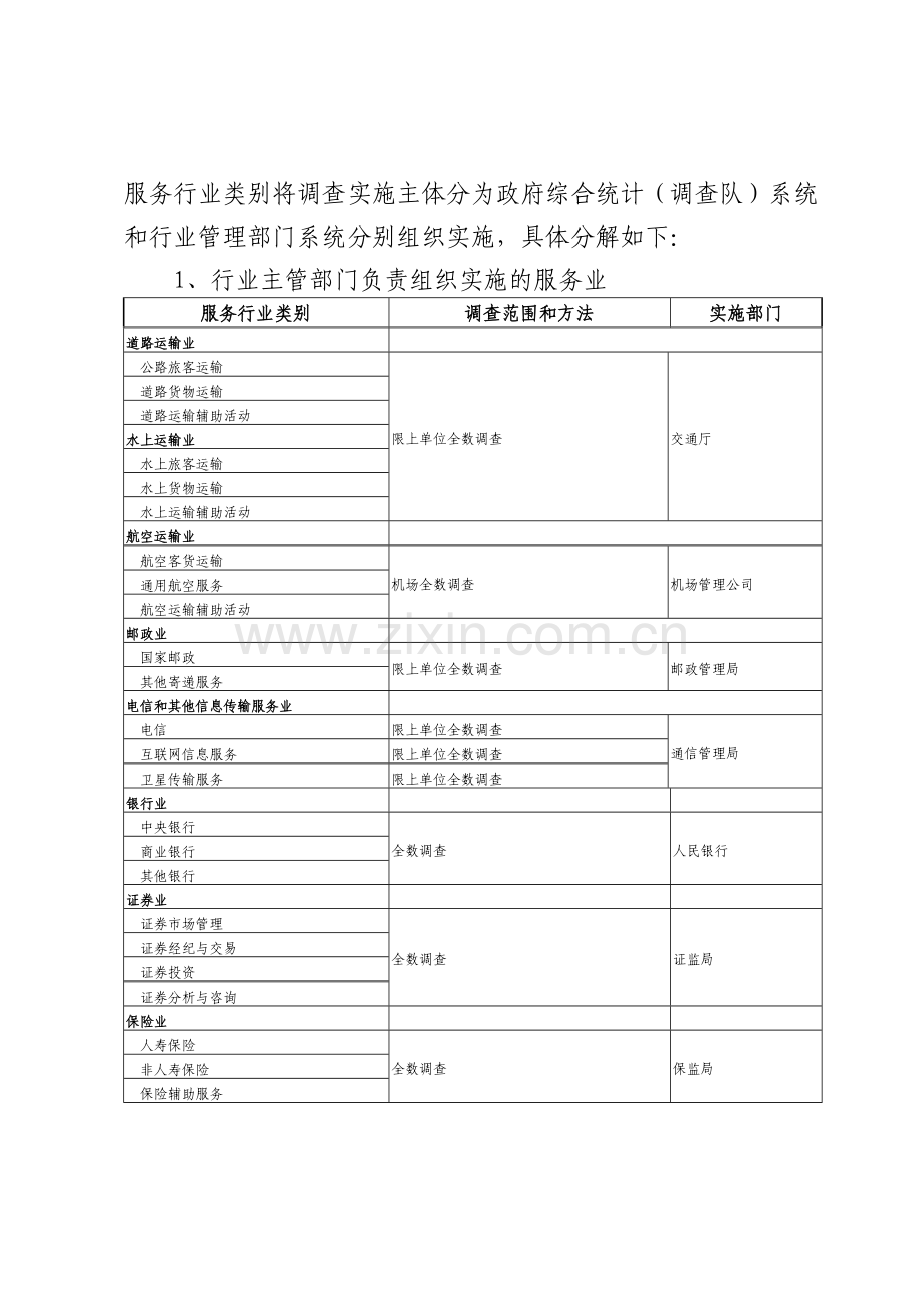 2、政府综合统计(调查队)系统负责组织实施的服务业