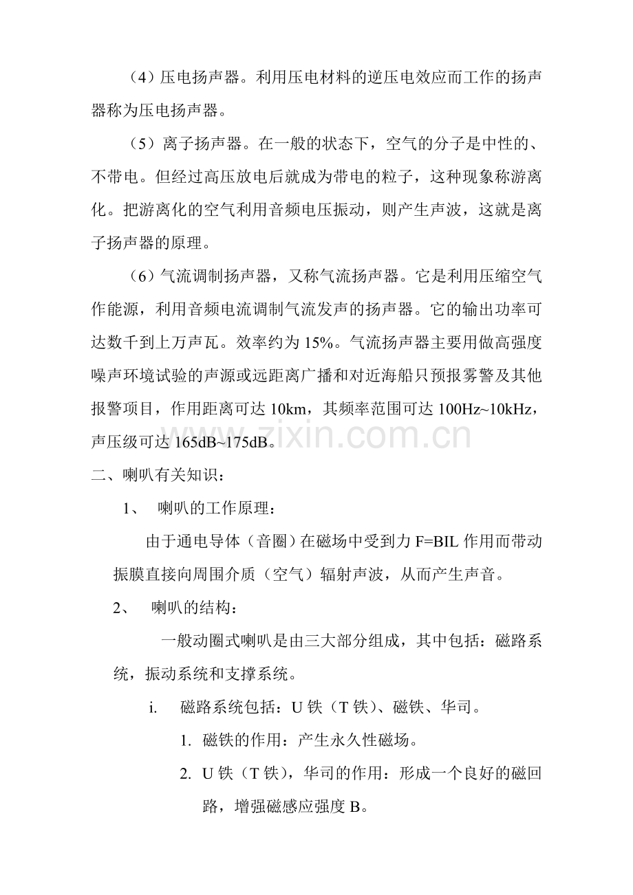 (4)压电扬声器。利用压电材料的逆压电效应而工作的扬声器称为压电扬声器。