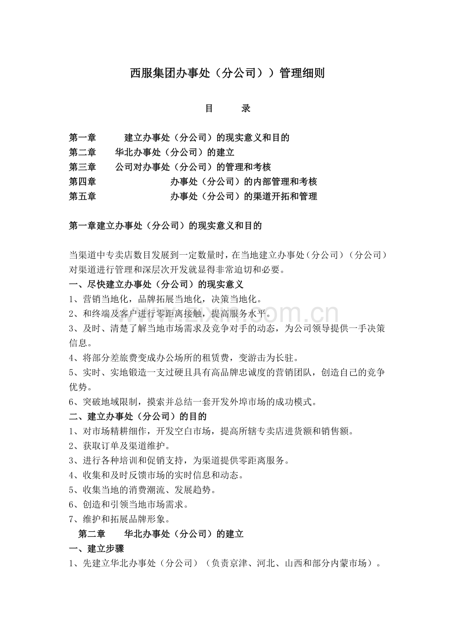 当渠道中专卖店数目发展到一定数量时,在当地建立办事处(分公司)(分公司)对渠道进行管理和深层次开发就显得非常迫切和必要。