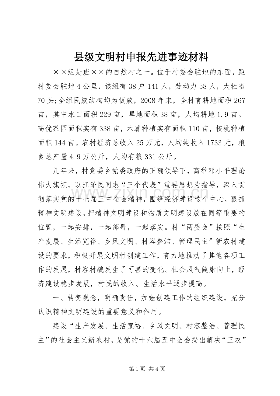 县级文明村申报先进事迹材料