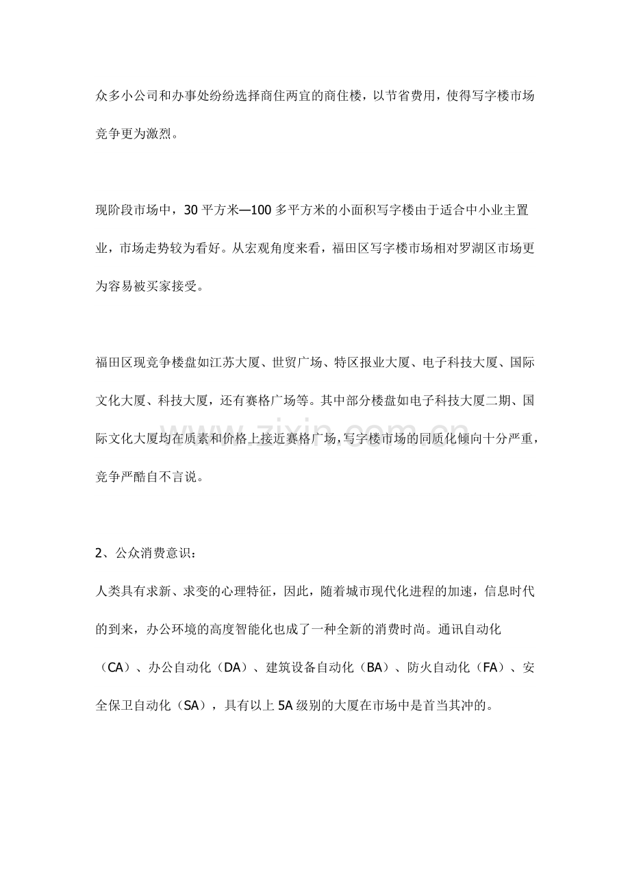 短期内写字楼市场的饱合,据资料显示,目前深圳市场写字楼的存量须15年才能消 化完。此为劣势之二。