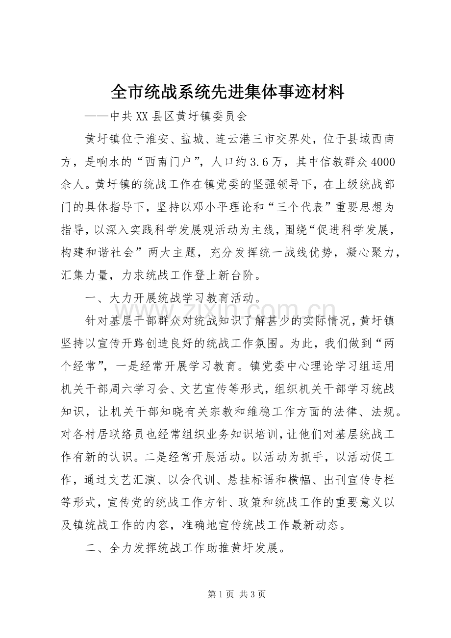 全市统战系统先进集体事迹材料