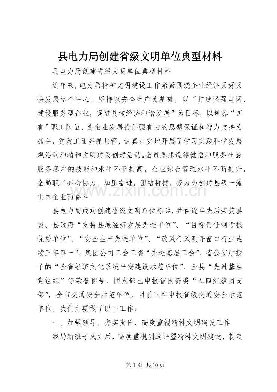 县电力局创建省级文明单位典型材料