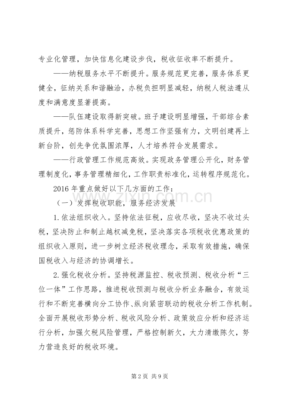 1.落实国税、地税征管体制改革。贯彻落实中央深化国税、地税征管体制改革方案和税务总局实施意见,全面实施国税、地税合作规范2.0版,强化组织协调,健全制度建设,结合我县实际创新国税、地税合作内容,不断推进服务深度融合,加大合作力度,提升合作层次,为xx经济社会发展提供有力支撑。