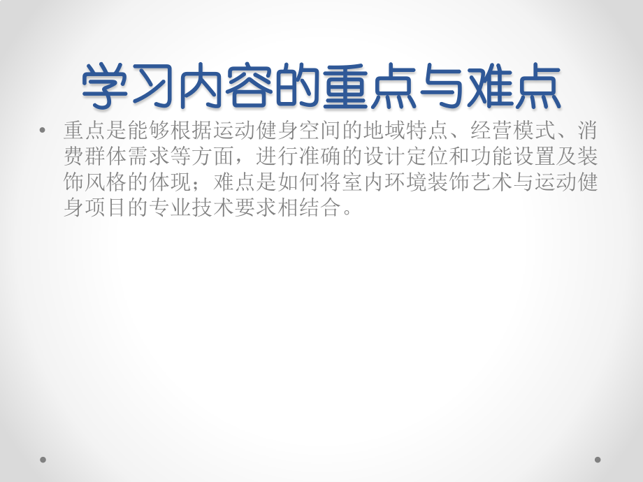 单击此处编辑母版标题样式,单击此处编辑母版文本样式,第二级,第三级,第四级,第五级,2017/9/29,#,第四,章 运动,健身空间环境设计,学习目标及基本要求,明确目前运动健身空间的设计概况,了解运动健身空间的,基本组成、项目分类及空间与环境的要求;理解运动健身,空间的,经营形式与设计定位、功能设置、消费层次,以及空间形态,、材料,选用等方面的联系。掌握运动健身空间的基本概念、类型,、功能,划分和设计要点,能通过市场调研并运用相关理论知识,解决,实际设计问题。,学习内容的重点与难点,重点是能够根据运动健身空间的地域特点、经营模式、消费群体需求等方面,进行准确的设计定位和功能设置及装饰风格的体现;难点是如何将室内环境装饰艺术与运动健身项目的专业技术要求相结合。,第一节,运动健身空间组成及项目分类,一、运动健身空间的基本,组成,运动健身空间,是指作为体育教育、竞技运动、身体锻炼和体育娱乐等活动提供的场所,包括建筑空间、运动场地及配套设施等。运动健健身空间的组成形式与内容,会因使用性质、用途、规模、经营方式和建设条件等不同,其组成形式及内容也有较大的差别,。,运动健身空间一般是由运动场地、运动健身辅助用房(如休息、更衣、浴室、洗手间等)和管理用房(如办公、器材、设备等)三部分组成,(一)运动场地,(二)运动健身辅助用房,对于容纳人数较多的运动健身空间来讲,必须配备休息区或休息用房、洗手间、浴室、小卖部、餐厅、医疗室等辅助用房。在进行整体布局时要使这些辅助用房的位置相对集中于某一区域,以提高使用率和便于管理。,(三)管理用房,二、运动健身项目的分类,(一)户外练习,类,(二)运动游戏类,三、运动场地与环境要求,(一),射箭场,射箭场有室内和室外两种场地,应设有休息区及相关服务设施。射箭场地要求地势平坦,无障碍,全长约,120,米左右,在射箭靶的后方应设置挡墙,场地宽度依靶位多少而定,(二),射击场,射击场有室内和室外两种场地。一般情况下,射击场多布置在城市郊区比较僻静或有山丘的地方,以保证安全和隔绝噪声,如设在市区,则应设于地下室等安全场所。射击场由射击靶棚、靶壕、侧向隔墙和射击靶后方挡墙(或山坡)组成。此外,还应设有休息区、枪支弹药保管和枪支修理等相关附属用房。,靶棚是射击者、信号指示员和参与者所用的棚屋。射击场设于室外时,为避免眩光,靶棚的射击方向应朝北。靶棚地面应高出棚外地面,50,厘米以上,以排除地面水蒸气浮动对射击瞄准的影响。靶壕深度必须超过人体身高,以确保执靶员的人身安全。,手枪射击场地,应在靶棚和射击位置前挡板之间的上空,约,2,2.3,米高度上设数道横向挡板,以防止眩光和流弹伤人,并可起到消声的作用。此外,移动活靶射击场的靶壕应设有供靶位在,10,米范围内来回跑动的开口,其两端均应设置防护墙,以保证设备和工作人员的安全。靶壕后面的土堤或其他背景物体上的颜色应为浅色,以便衬托出跑靶。,(三)自行车,赛车场,自行车赛车场有室外和室内两种,其跑道为封闭的环形,周长有,250,米、,285.714,米、,333.33,米、,400,米、,500,米等几种。室内自行车赛车场的周长以,250,米最为常见。赛车场的跑道平面由两个直线段、两个圆弧线段和四个螺旋线形的过渡曲线段组成。为克服弧线运动时产生的离心力,在弯道部分均应设有坡度。自行车赛车场跑道的路面有土质、木质、混凝土、沥青混凝土等几种。,(四),赛马场,赛马场的占地面积都较大,一般为,40,60,公顷。赛马场的运动场地为环形跑道,周长为,1000,4200,米,常用的为,2000,米,最短的为,800,米,跑道宽度为,15,25,米。马球场地为,100300,米,球门宽,8,米。赛马场的跑道要求地面平坦,土质不宜过于松软,弯道处应设有,2,3%,内向坡度。赛马场应设有观众席、售票处、休息厅和骑手、赛马用房等。,(五)冰上锻炼娱乐,运动,冰球场、花样滑冰场和短跑道速度滑冰场可兼用,通常的设置尺寸为长,61,米,宽,30,米。速度滑冰场的标准场地设置是由两条宽,5,米、周长为,400,米的封闭式跑道组成。冰上曲棍球场的设置尺寸为长,110,米,宽,65,米。,(六)滑雪,场,滑雪场,多建在多雪的高山、丘陵等地带,主要由滑雪场地、滑雪、登山索道和管理附属区等组成。滑雪场的选址必须根据各项滑雪运动对滑雪道的坡度、宽度、长度和起终点标高差等要求而定,应尽量多利用自然地形来设置滑雪道。跳台滑雪的主要设施,应利用自然地形,依山就势地来建造滑雪跳台。滑雪跳台的基本组成部分,应包括起滑台、助跑道、起跳台、着陆坡道和停止区等路段。滑雪场的附属建筑包括观众席、索道、机房,以及各种服务设施等。有些滑雪场还设有人工降雪设备,以备雪情不佳时使用。,第二节,游泳馆空间环境设计,一、游泳馆的,种类,(一)比赛游泳馆,(二)专业训练,游泳馆,(三)室内公共,游泳馆,(四)家庭游泳池,二、游泳馆的设计要点,(一)功能规划及要求,1.,功能布局与人流动线组织合理,2,.,游泳池设置形式,3,.,游泳馆看台位置,4.,区域划分应干湿,分离,5.,游泳池的进入动线,顺序,6.,消防疏散及货运,通道,7.,紧急救助医务室,(二)游泳池设计和环境,要求,1.,游泳池的尺寸,比赛游泳池的国际标准尺寸为长,50,米,宽不小于,21,米,水深在,1.8,米以上,池内设,8,条泳道,并装设出发台、自动计时器、浮标