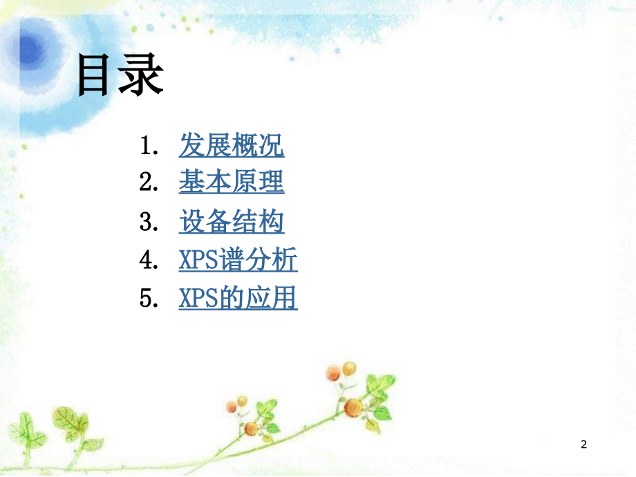 单击此处编辑母版标题样式,单击此处编辑母版文本样式,第二级,第三级,第四级,第五级,*,X,射线光电子谱,(XPS),(X-ray Photoelectron Spectroscopy),报告人,陈新娟,学 号,2120100222,1,1.,发展概况,2.,基本原理,3.,设备结构,4.,XPS,谱分析,5.,XPS,的应用,目录,2,1.,发展概况,19,世纪末赫兹就观察到了光电效应,,20,世纪初爱因斯坦建立了有关光电效应的理论公式,直到,1954,年,瑞典皇家科学院院士,,Uppsala,大学物理研究所所长,,K.Seigbahn,教授领导的研究小组创立了世界上第一台光电子能谱仪,3,2,基本原理,XPS,其基本原理是利用单色,X,射线照射样品,使样品中原子或者分子的电子受激发射,然后测量这些电子的能量分布。从而确定样品中原子或者离子的组成和状态。,(,对于特定的单色激发源和特定的原子轨道,其光电子的能量是特征的,),4,2,基本原理,2.1,光电子的产生,光电效应,光电发射定律,弛豫效应,2.2,化学位移,与元素电负性的关系,与原子氧化态的关系,5,光电效应,当一束能量为,h,的单色光与原子发生相互作用,而入射光量子的能量大于原子某一能级电子的结合能时,发生电离:,M+h=M*,+,+e,-,注:,由于需要原子核来保持动量守恒,因此光电效应的几率随着电子同原子核结合的加紧而很快的增加,所以只要光子的能量足够大,,被激发的总是内层电子,。外层电子的光电效应几率就会很小,特别是价带,对于入射光来说几乎是,“,透明,”,的。,6,光电发射定律,h=E,B,+E,K,即光子的能量转化为电子的动能,E,K,并克服原子核对核外电子的束缚,E,B,E,B,=h-E,K,7,光电发射定律,1,),对气态原子或分子,h=E,Bv,+E,Kv,2,),对固体样品,(必须考虑晶体势场和表面势场对光电子的束缚作用以及样品导电特性所引起的附加项),h=E,BF,+E,KF,+,S,E,BF,:,电子结合能,电子从所在能级移到费米(,Fermi,)能级所需的能量,S,:逸出功(功函数),固体样品中电子由费米能级跃迁到自由电子能级做需的能量为逸出功。,E,k,:自由电子动能。,8,弛豫效应,电子弛豫:,电子从内壳层出射,结果使原来体系中的平衡势场被破坏,形成的离子处于激发态,其余轨道电子结构将作出重新调整。原子轨道半径会发生变化。这种电子结构的重新调整叫电子弛豫。,弛豫的结果使离子回到基态,同时释放出弛豫能。由于在时间上弛豫过程大体与光电发射同时进行,所以弛豫加速了光电子的发射,提高了光电子的动能。结果使光电子谱线向低结合能一侧移动。,9,化学位移:,同种原子处于不同化学环境而引起的电子结合能的变化,在谱线上造成的位移称为化学位移。,化学环境不同有两方面含义:,一是指与它结合的元素种类和数量不同;二是指原子具有不同的价态。,2.2,化学位移,10,化学位移的解释:分子电位,-,电荷势模型,轨道电子的结合能由,原子核,和,分子中的电荷分布,确定。,原子在与其它原子化合成键时发生了价电子转移,价电子对内层轨道上的电子起屏蔽作用,因此价壳层电荷密度的改变必将对内层轨道电子结合能产生一定的影响。,(通常正电荷其结合能高于自由原子的结合能,化学位移为正,反之,得到负电荷,化学位移为负),结合能位移可表示成,E,B,A,=E,V,A,+,E,M,A,E,V,A,表示分子,M,中,A,原子本身价电子的变化对化学位移的贡献;,E,M,A,则表示分子,M,中其它原子的价电子对,A,原子内层电子结合能位移的贡献,11,化学位移与元素电负性的关系,用卤族元素,X,取代,CH,4,中的,H,,,C,原子周围的负电荷密度较未取代前有所降低,这时,C,的,1s,电子同原子核结合的更紧,因此,C1s,的结合能会提高,元素的电负性大小次序为,FOCH,分子中某原子的内层电子结合能位移量,E,B,A,同和它结合的原子电负性之和有一定的线性关系,12,化学位移与原子氧化态的关系,理论上,同一元素随氧化态的增高,内层电子的结合能增加,化学位移增加。,但也有特例,如:,Co,2+,的电子结合能位移大于,Co,3+,。,13,3.X,射线光电子能谱仪,X,射线能谱仪的基本组成,最主要部件:激发源、能量分析器、电子探测器,14,5.XPS,谱图分析,XPS,谱图,光电子线及伴峰,15,左图是表面被氧化且有部分碳污染的金属铝的典型的图谱,是宽能量范围扫描的全谱,低结合能端的放大谱,O,和,C,两条谱线的存在,表明金属铝的表面已被部,分氧化并受有机物的污染,O,的,KLL,俄歇谱线,相邻的肩峰则分别对应于,Al,2,O,3,中铝的,2s,和,2p,轨道的电子,XPS,谱图,16,XPS,全谱,它给出的各个元素的各个轨道的结合能是进行定性分析的依据,谱图的横坐标是电子的结合能(,eV,),纵坐标是光电子线的相对强度(,cps,)另外,在图谱中还有一些俄歇线。,17,光电子线及伴峰,1,)光电子线。光电子线是谱图中强度最大、峰宽最小、对称性最好的谱峰,称为,XPS,的主线。每一种元素都有自己的具有表征作用的光电子线。所以,是元素定性分析的主要依据。光电子线的谱线宽度来自于样品元素本质信号的自然宽度、,X,射线源的自然线宽、仪器以及样品自身状况的宽化因素等四个方面的贡献。高结合能的光电子线比低结合能的光电子线宽,1,4eV,;绝缘体比良导体宽,0.5eV,。,18,光电子线及伴峰,2,),X,射线卫星峰(,X-ray satellites,)用来照射样品的,X,射线未经过单色化处理,那么在常规使用的,Al K,1,2,和,Mg K,1,2,。射线里可能混杂有,K,3,4,5,6,和,K,射线,这些射线统称为,K,1,2,的射线的卫星线。样品原子在受到,X,射线照射时,除了发射特征,X,射线(,K,1,2,)所激发的光电子外,其卫星线也激发光电子,由这些光电子形