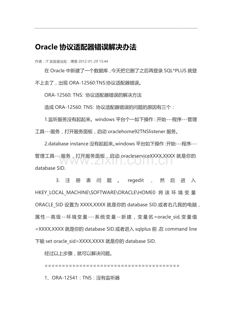 ORA-12560: TNS: 协议适配器错误的解决方法