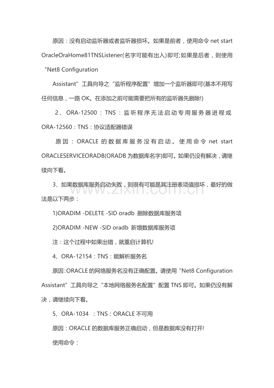 1.监听服务没有起起来。windows平台个一如下操作:开始---程序---管理工具---服务,打开服务面板,启动oraclehome92TNSlistener服务。