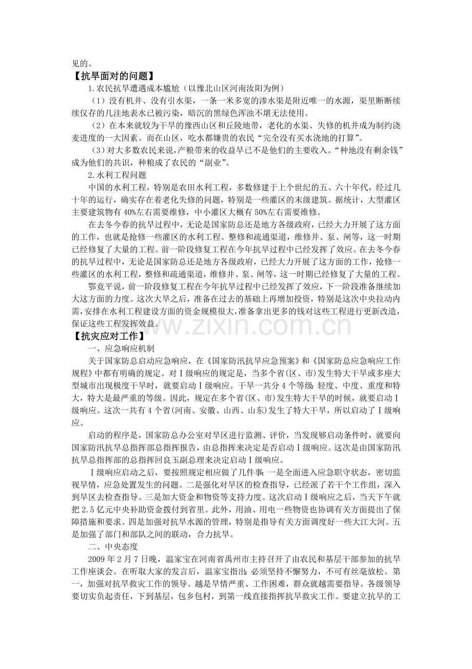 热点专题一:抗旱救灾