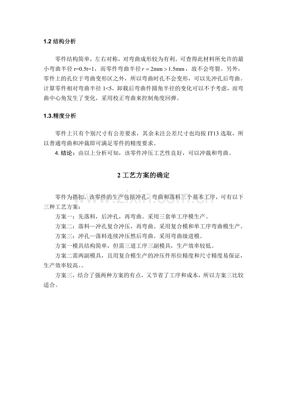 4.结论:由以上分析可知,该零件冲压工艺性良好,可以冲裁和弯曲。