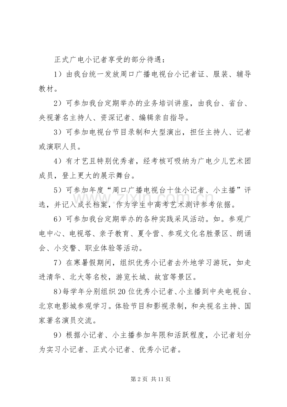 1.“周口广播电视台小记者”是周口广播电视台与XX市教育局联合,针对全市中小学生开展的少年儿童素质教育组织。
