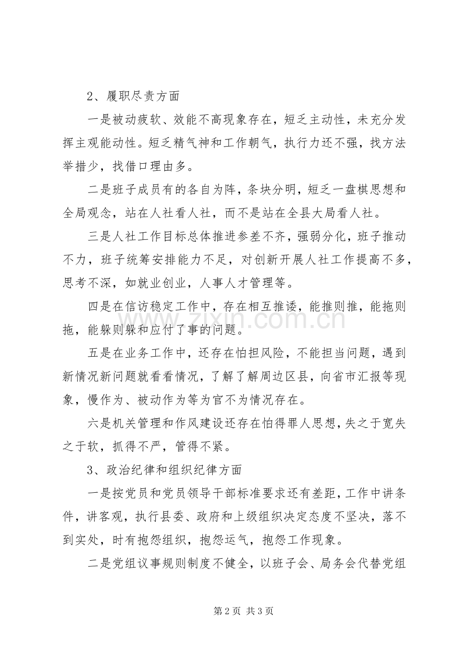 人力资源和社会保障局领导班子三严三实对照检查材料