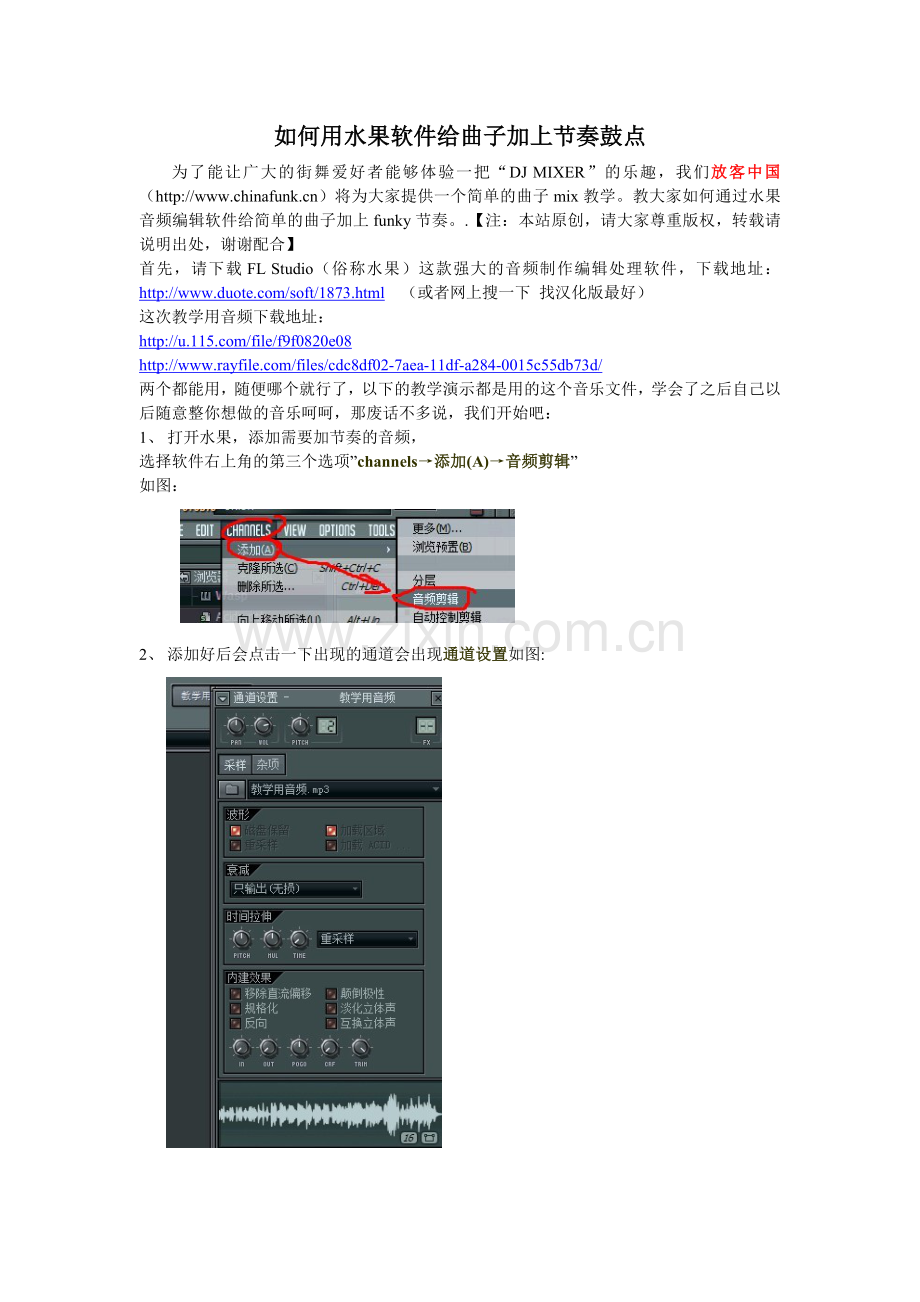 为了能让广大的街舞爱好者能够体验一把“DJ MIXER”的乐趣,我们放客中国()将为大家提供一个简单的曲子mix教学。教大家如何通过水果音频编辑软件给简单的曲子加上funky节奏。.【注:本站原创,请大家尊重版权,转载请说明出处,谢谢配合】