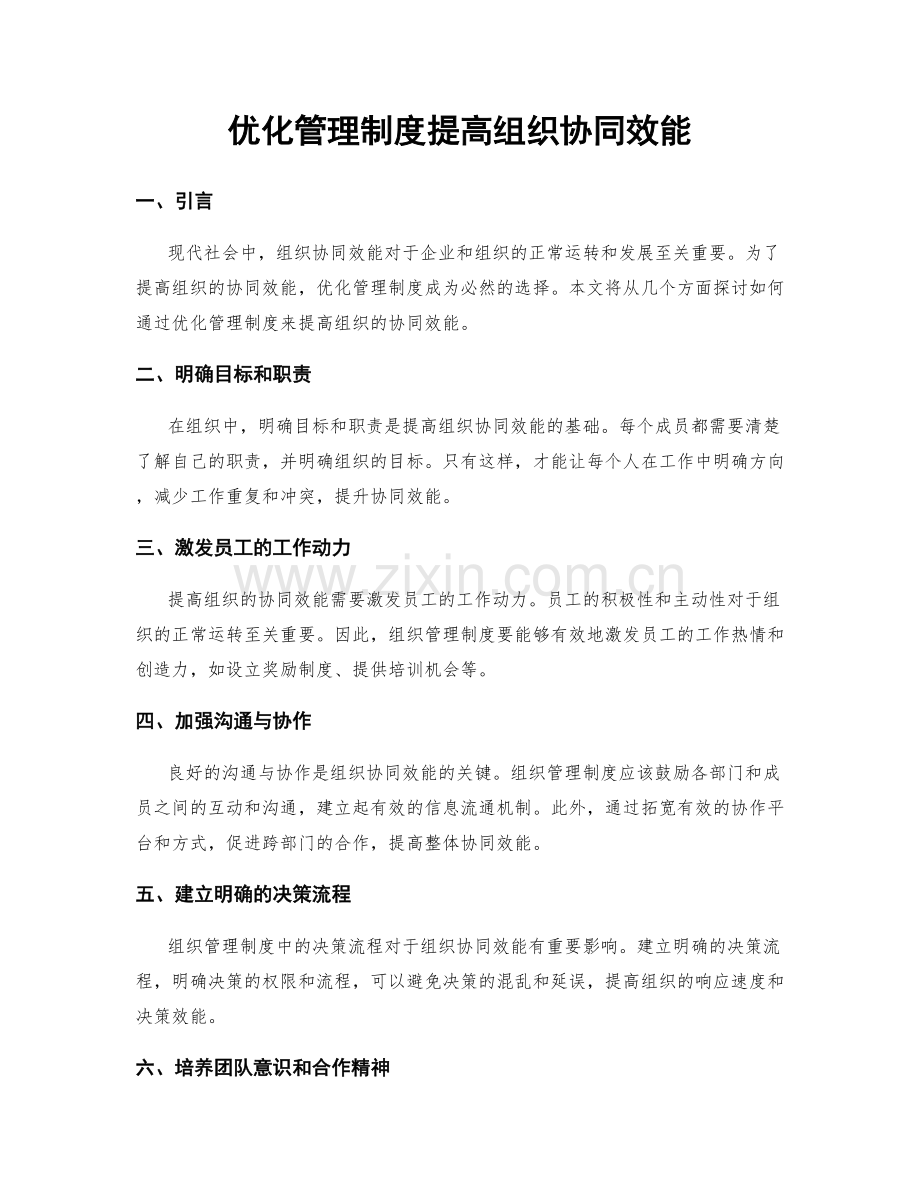 现代社会中,组织协同效能对于企业和组织的正常运转和发展至关重要。为了提高组织的协同效能,优化管理制度成为必然的选择。本文将从几个方面探讨如何通过优化管理制度来提高组织的协同效能。