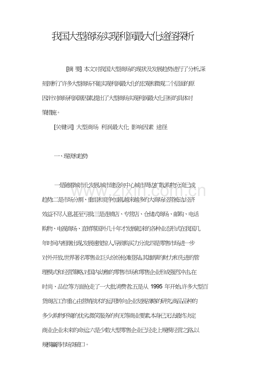 [关键词] 大型商场 利润最大化 影响因素 途径