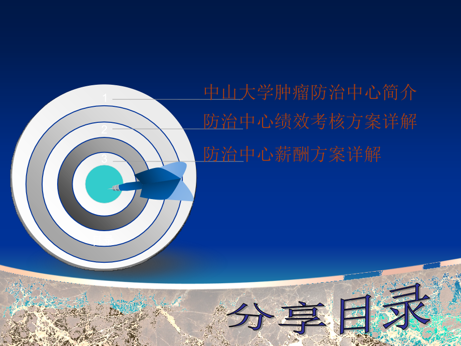 ,单击此处编辑母版标题样式,单击此处编辑母版文本样式,第二级,第三级,第四级,第五级,*,医院管理咨询 项目部 张磊,绩效薪酬管理模式简介,广东中山大学肿瘤防治中心,1,2,3,目录,分享目录,中山大学肿瘤防治中心简介,防治中心绩效考核方案详解,防治中心薪酬方案详解,一、中山大学肿瘤医院简介,中山大学肿瘤防治中心是我国顶尖的肿瘤专科医院和研究中心,中山大学肿瘤医院位于广州市,为中山大学附属医院。,是华南地区规模最大最有影响的集医疗、教学、科研、预防于一体的肿瘤防治机构,是世界卫生组织(,WHO,)癌症研究合作中心。,一、中山大学肿瘤医院简介,中心由中山大学附属肿瘤医院和中山大学肿瘤研究所两部分组成。,中心现有员工,1876,人,病床数,984,张,设有,32,个业务科室,,8,个职能处室,,2,个实验研究科室。,2012,年门诊量达,565076,人次,出院人数达,51916,人次,手术,10914,例,病人来自全国各地及东南亚地区。医疗业务量均居全国肿瘤专科医院前列。,一、中山大学肿瘤医院简介,中心拥有一支高水平的的医教研队伍,其中中国科学院院士,2,名,硕士生导师,92,名,博士生导师,61,名,在读研究生,459,人。,中心是国家重点学科(肿瘤学)、国家重点实验室(华南肿瘤学国家重点实验室)、教育部重点实验室、广东省重点实验室、国家级首个抗癌药物临床实验研究基地(,GCP,中心)、中国中西医结合肿瘤中心、博士学位授权点、博士后科研工作流动站,广东省抗癌协会的依托单位。,中心主编国家级核心期刊,癌症,。,一、中山大学肿瘤医院简介,组织远景,国内综合视力最强、,国际一流的,肿瘤学医教研基地,1,2,3,目录,分享目录,中山大学肿瘤防治中心简介,防治中心绩效考核方案详解,防治中心薪酬方案详解,管理现状,在取得医疗和科研的巨大成果之后,中心高层明锐的意识到不能让管理成为医院发展的桎梏。,2006,年开启了,“管理工程”,,进行了一些列大胆的尝试和创新,,邀请外脑(深圳康达信、上海康程,),做了人力资源管理的优化。,引进了台湾实行的,绩效单价制、用人费率制、,KPI,等先进模式。,调动了医师的工作积极性,促成了战略目标的达成,二、中山大学肿瘤医院绩效方案,历时,2,年(,07-09,年),不断地改革尝试,形成该中心一套完善、科学的绩效管理机制。,期间的准备工作:,一、信息化建设,二、定岗定编,三、请进外脑启动绩效、薪酬管理机制的改革,二、中山大学肿瘤医院绩效方案,按收入提成,现代医院绩效管理改革历程,成本核算,绩效分配新模式,二、中山大学肿瘤医院绩效方案,二、中山大学肿瘤医院绩效方案,医疗工作绩效,I,管理工作绩效,II,科研工作绩效,III,教学工作绩效,IIII,四维度,绩效评价体系,医疗工作绩效,I,二、中山大学肿瘤医院绩效方案,各维度考核基本内容,项目,教学,绩效,科研,绩效,医疗工作绩效,管理工作绩效,工作量,工作质量,社会,影响力,运营指标,行政事务,KPI,核算周期,年度,年度,月度,季度,年度,季度,季度,季度,考核标准,全院统一,全院统一,RBRVS,体系,质量交叉评分,全院,统一,成本,管控,全院,统一,各科,不同,医疗科室,课题组,行政后勤,综合绩效得分,教学,绩效,科研,绩效,医疗,绩效,管理,绩效,评价,结果,医疗,科室,15%,5%,50%,30%,医疗科室综合排名,课题组,20%,70%,10%,课题组综合排名,行政后勤科室,5%,10%,85%,行政后勤科室综合排名,该中心的绩效管理模式简述,医:,医生,RBVRS,、护理时间单价制、医技,RBVRS,与时间单价制与用人费率多元混合,管:,医疗科室:经营、社会影响力、行政事务;课题组与行政后勤科室:经营、社会影响力、行政事务、,KPI,二、中山大学肿瘤医院绩效方案,该中心的绩效管理模式意义,多维度、立体式评价体系,解决万能型人才与工匠型医生考核。,医疗与科研的平衡:通过绩效的公平达到均衡,如发表,SCI,论文加分。,医院与科室之间的均衡:不同职系分立考核,差距凸显,科主任协调任务艰巨。,增强了成本节约意识,加大成本控制力度,二、中山大学肿瘤医院绩效方案,二、中山大学肿瘤医院绩效方案,绩效管理改革前的基础性配套工作,完善信息化建设(,HIS,、,PACS,、电子病历、检验系统、病理系统、医院综合运营管理系统,HBOS,、体检、放疗等,20,多个信息系统),规范数据采集,明确数据责任科室,夯实定岗定编工作(引进外脑康达信完成),二、中山大学肿瘤医院绩效方案,(一)医疗绩效,之,医师绩效,采用,RBRVS,(以资源投入为基础的相对价值体系)(绩效费率),RBVRS=,(,TW+RPC+PLI,),GAF,二、中山大学肿瘤医院绩效方案,RBRVS,简介,背景:来自美国,,80,年代末,医疗市场失灵,医疗收费价格扭曲,国会开始改革医疗付费标准,内容:工作量化评估标准,,1,、必须为医师亲自操作的项目。,2,、药品、材料、血液项目不计算绩效。,3,、风险性及技术含量高的项目,绩效费率高,反之则低。,4,、单位工作量耗费人力价值多的项目,绩效费率高。,5,、医师只判读不亲自操作的项目,绩效费率低。,作用意义:较好的反映了医务人员的工作量、服务质量、工作风险和医疗技术反应专科特色,体现多劳多得,降低医疗成本,鼓励人员开展高技术项目,促进医疗项目发展,,在对医生的支付方面不依据市场价格,可以说是以投入成本为基础而规定的诊疗行为的各自单价,故成为美国抑制医疗费用上涨的一个举措之一,二、中山大学肿瘤医院绩效方案,RBRVS,与以收入为主导的全