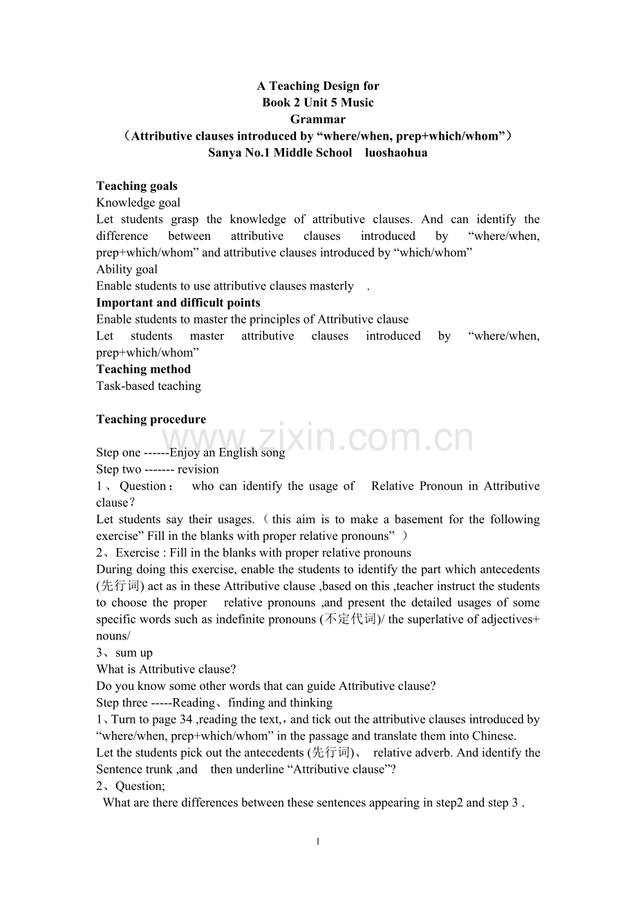 Let the students pick out the antecedents (先行词)、 relative adverb. And identify the Sentence trunk ,and then underline “Attributive clause”?