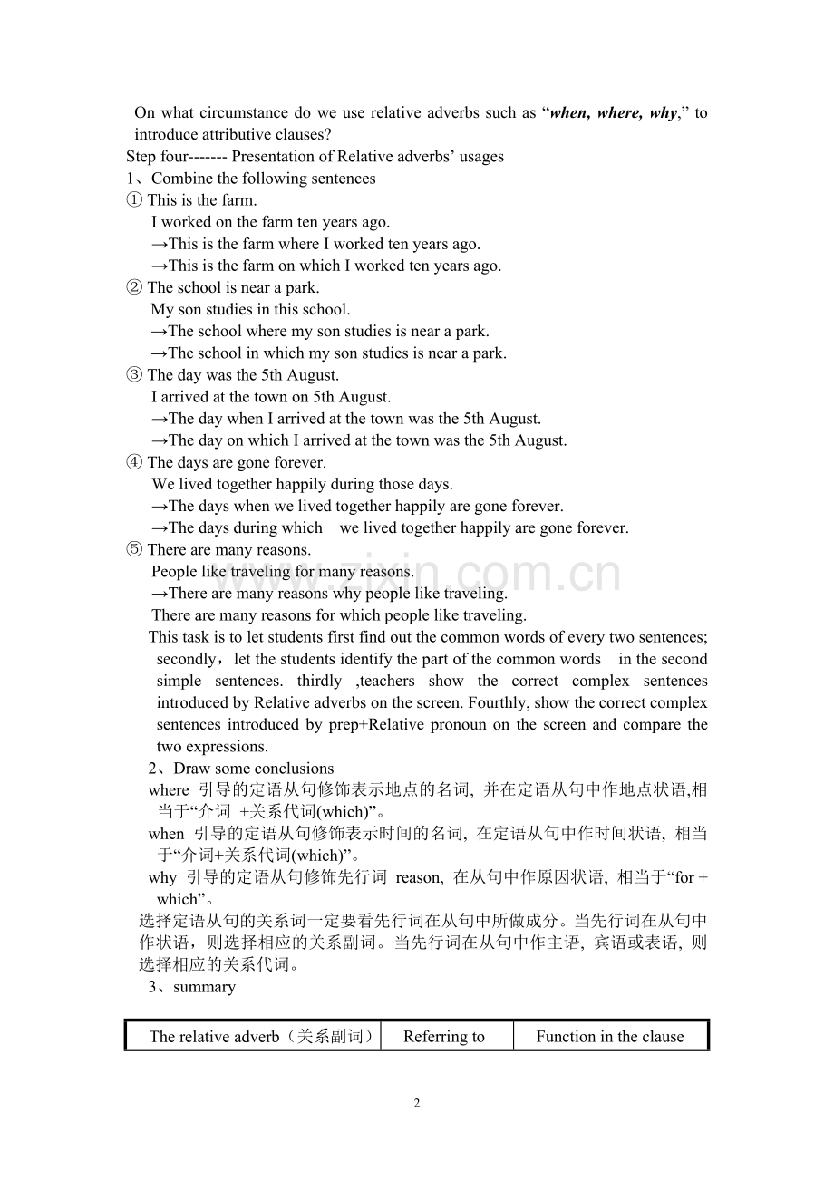 This task is to let students first find out the common words of every two sentences; secondly,let the students identify the part of the common words in the second simple sentences. thirdly ,teachers show the correct complex sentences introduced by Relative adverbs on the screen. Fourthly, show the correct complex sentences introduced by prep+Relative pronoun on the screen and compare the two expressions.