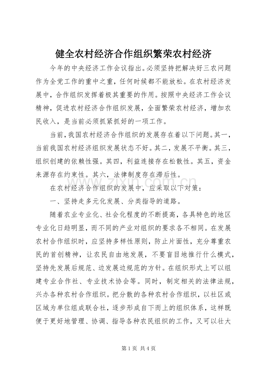 健全农村经济合作组织繁荣农村经济