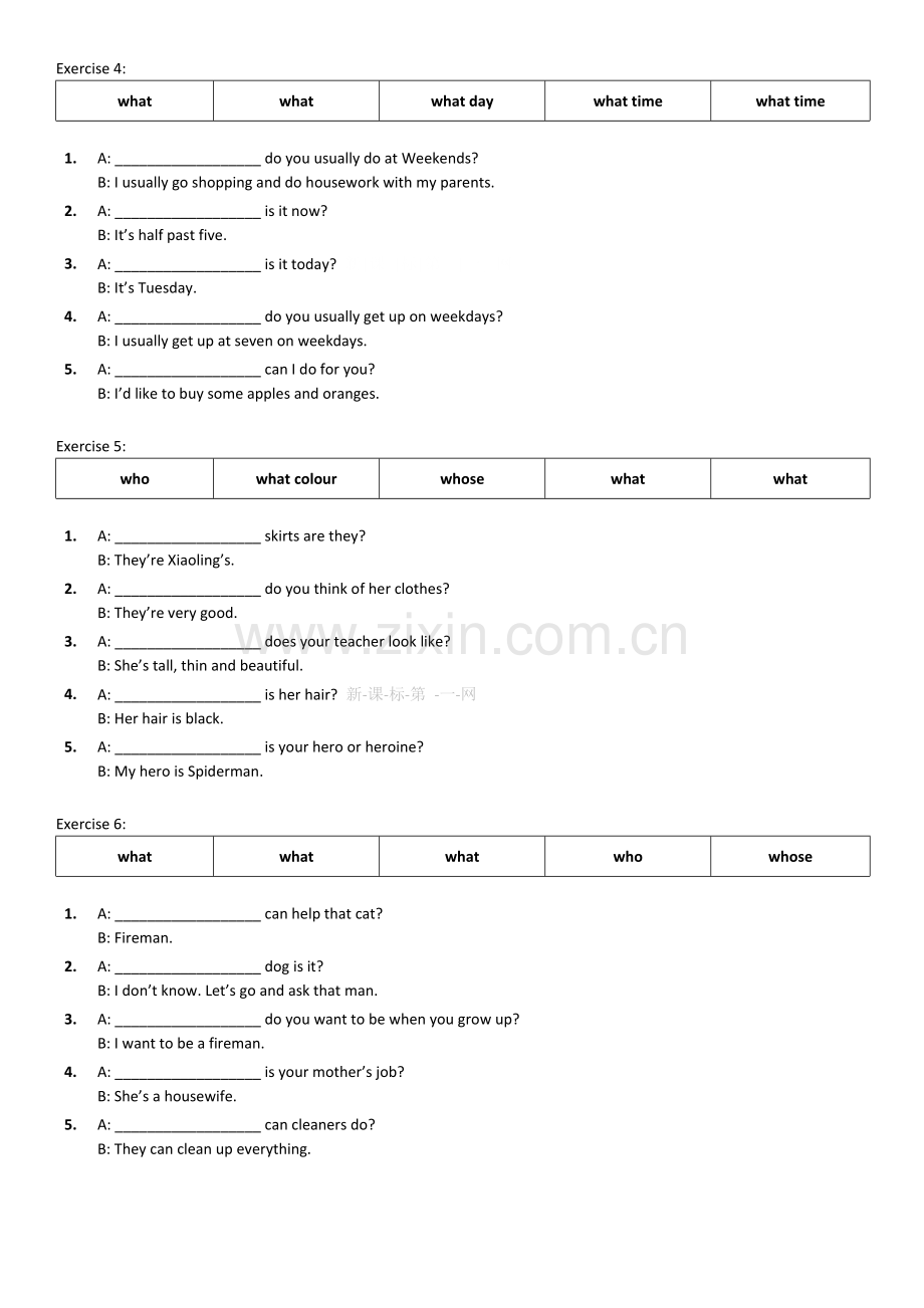 特殊疑问词:who, whose, which, when, where, what, what time, what day, what colour, how, how much, how many…