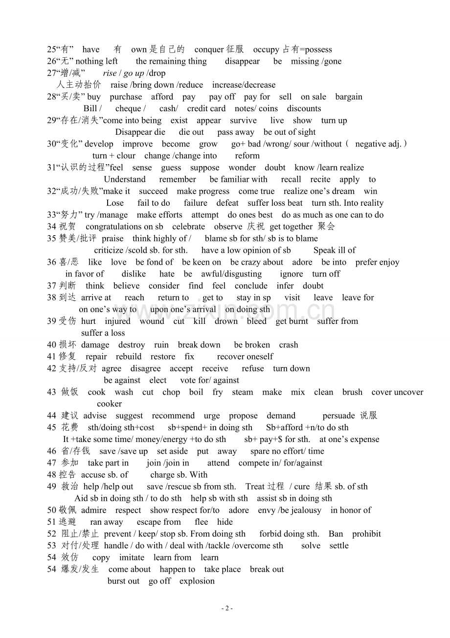 30“变化” develop improve become grow go+ bad /wrong/ sour /without( negative adj.) turn + clour change /change into reform