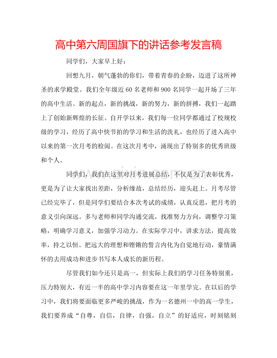 尽管我们如今还只是高一,但实际上我们的学习任务特别重,压力特别大,有近一半的高中学习内容要在这一年里学完。在以后的学习中,我们将要面临更多严峻的挑战,作为一名德州一中的高一学生,我们要养成“自尊,自信,自律,自强,自立”的好适应,时刻铭刻“严谨,务实,静思,善学”的学习理念。用本人的勤奋和努力去换取属于本人的辉煌明天。三周之后,我们将迎来进入高中以来更为重要的一次考试--期中考试。希望同学们抓住每一分,每一秒,努力学习,认真预备,争取在期中考试中获得更好的成绩,希望下次期中考试表彰大会上可以听到你的名字。