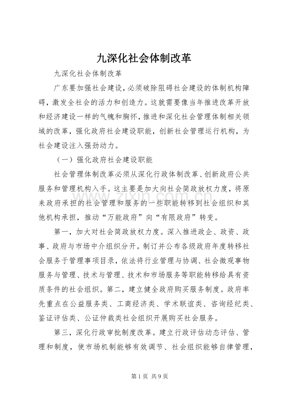 九深化社会体制改革
