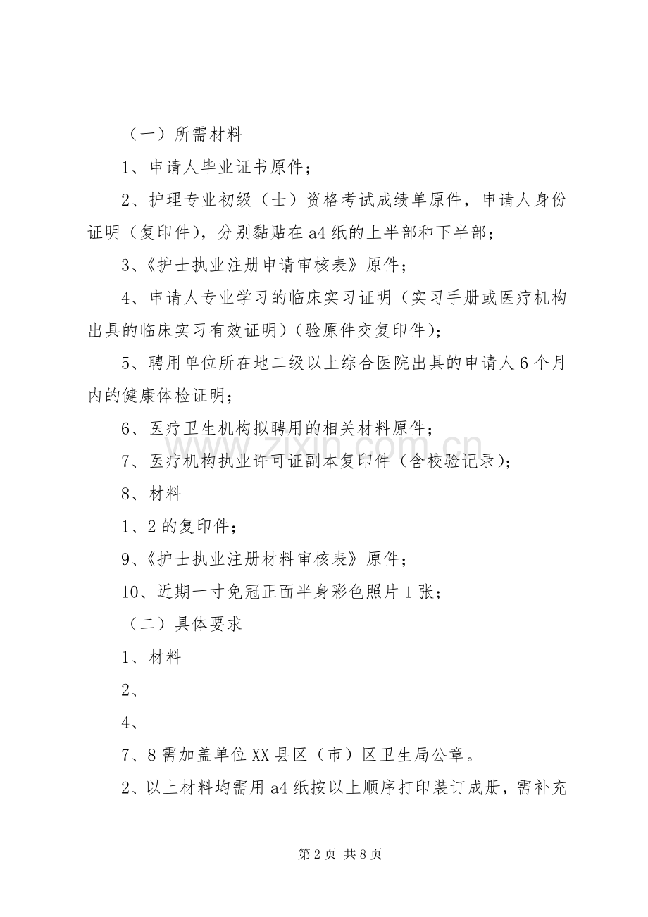 四、相关表格可至XX市卫生局网站“护士窗口”下载,。