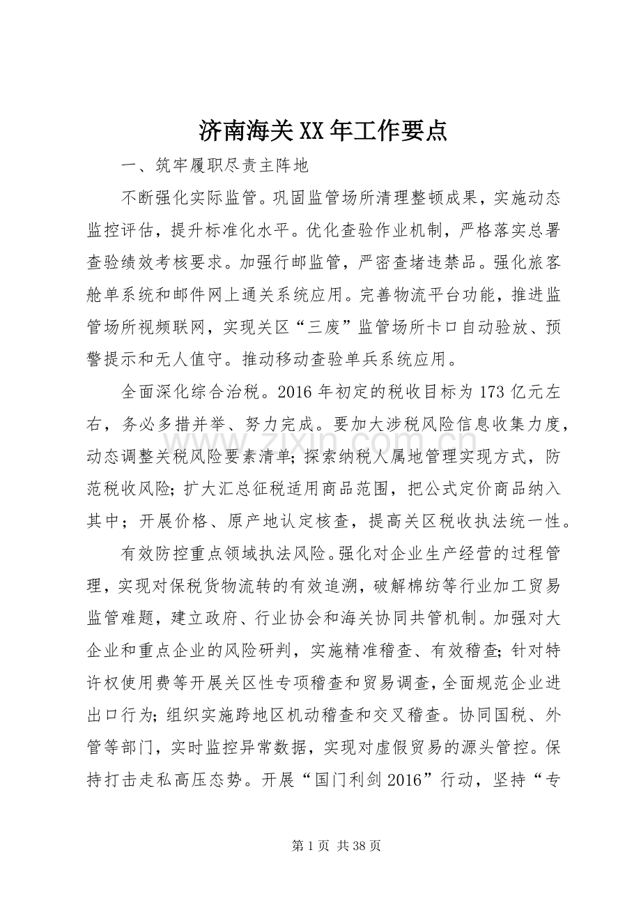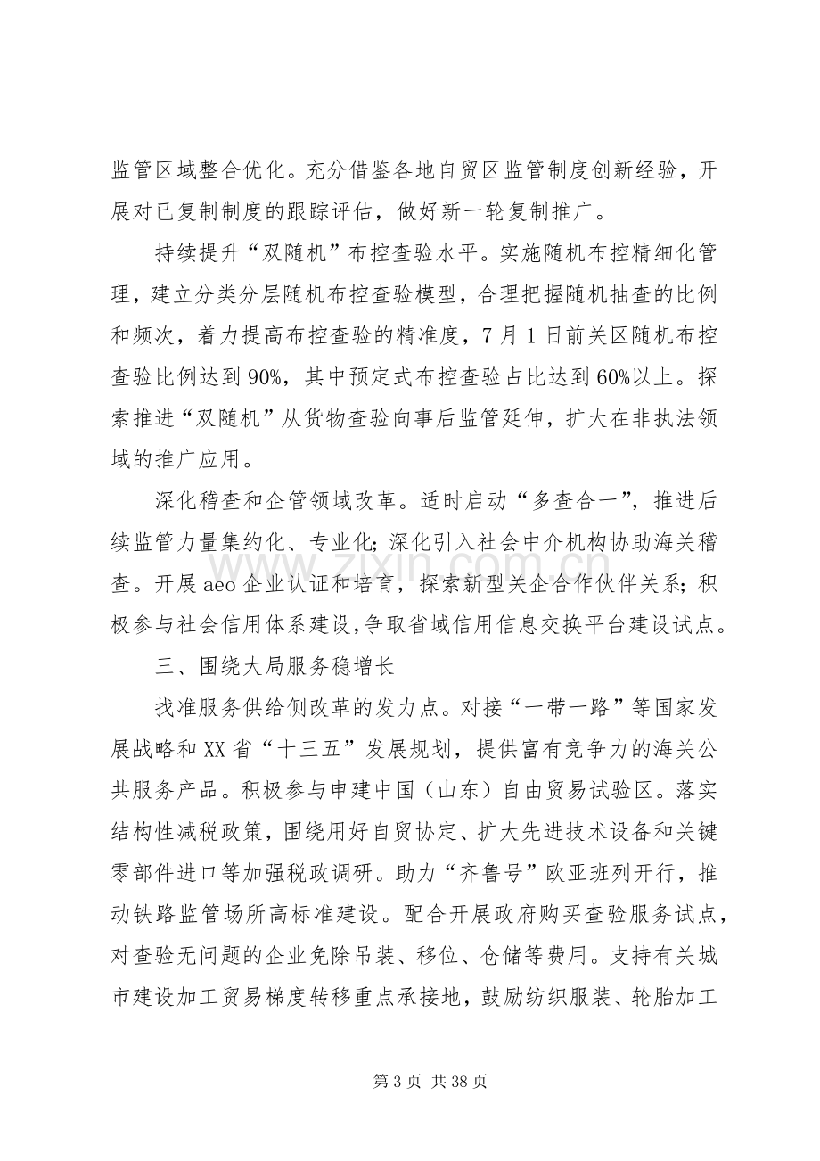 第二篇。海关2010年工作要点xx年年是深入贯彻落实科学发展观、积极推进社会主义和谐社会建设的重要一年,也是我关打造“精品海关”的第一年,做好今年工作意义重大、影响深远。关党组决定,将xx年年定为“整合创新年”,树立“改革是创新,整合也是创新”的理念,在整合中坚持创新,在创新中实现整合,开拓思路,勇于突破,为我关早日建成“精品海关”迈出坚实的第一步。
