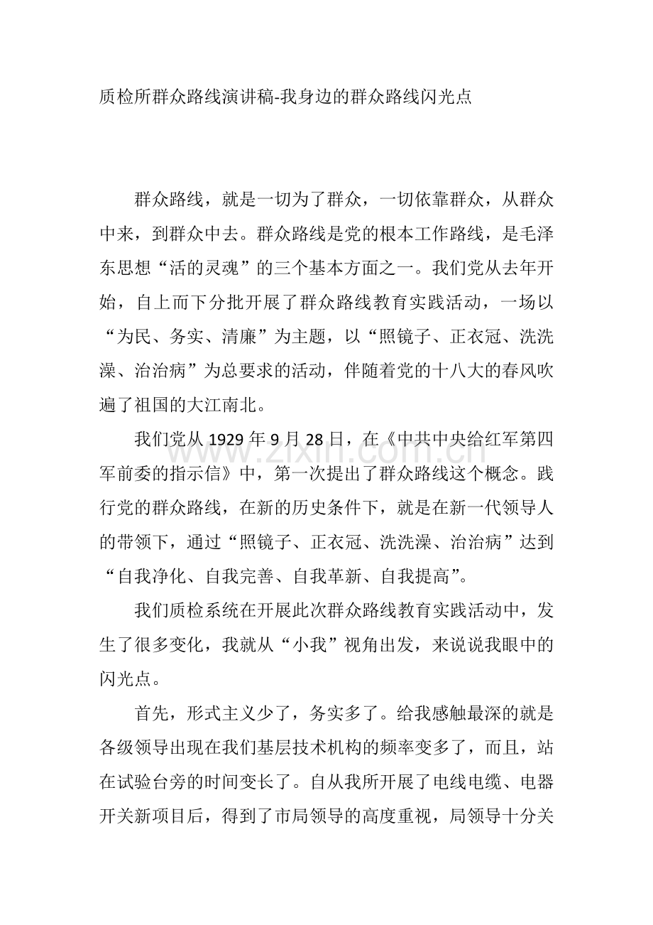 质检所群众路线演讲稿-我身边的群众路线闪光点
