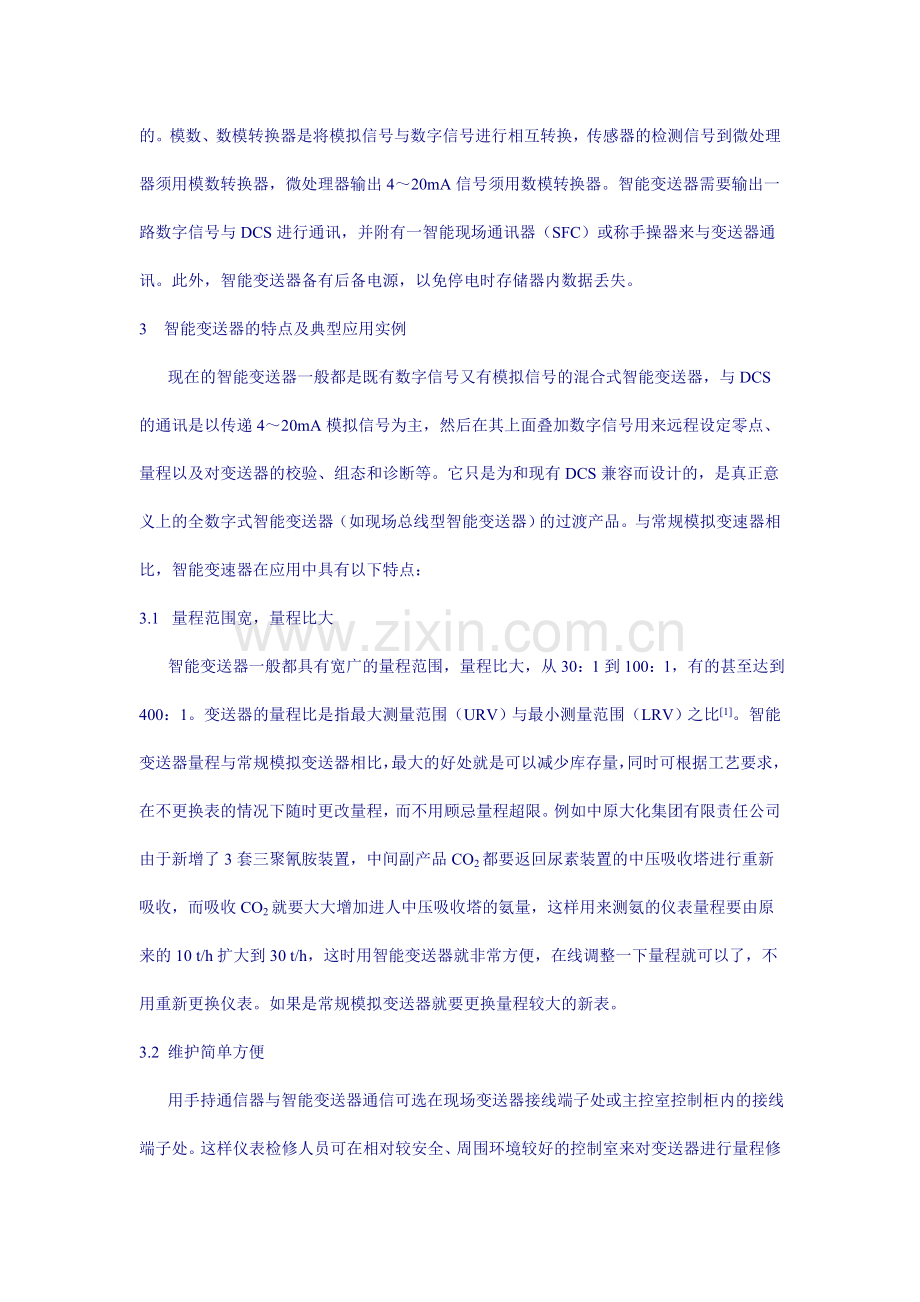 现在的智能变送器一般都是既有数字信号又有模拟信号的混合式智能变送器,与DCS的通讯是以传递4~20mA模拟信号为主,然后在其上面叠加数字信号用来远程设定零点、量程以及对变送器的校验、组态和诊断等。它只是为和现有DCS兼容而设计的,是真正意义上的全数字式智能变送器(如现场总线型智能变送器)的过渡产品。与常规模拟变速器相比,智能变速器在应用中具有以下特点: