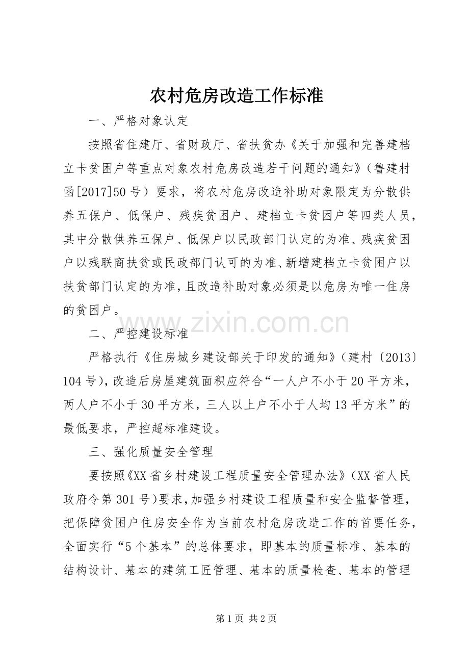农村危房改造工作标准