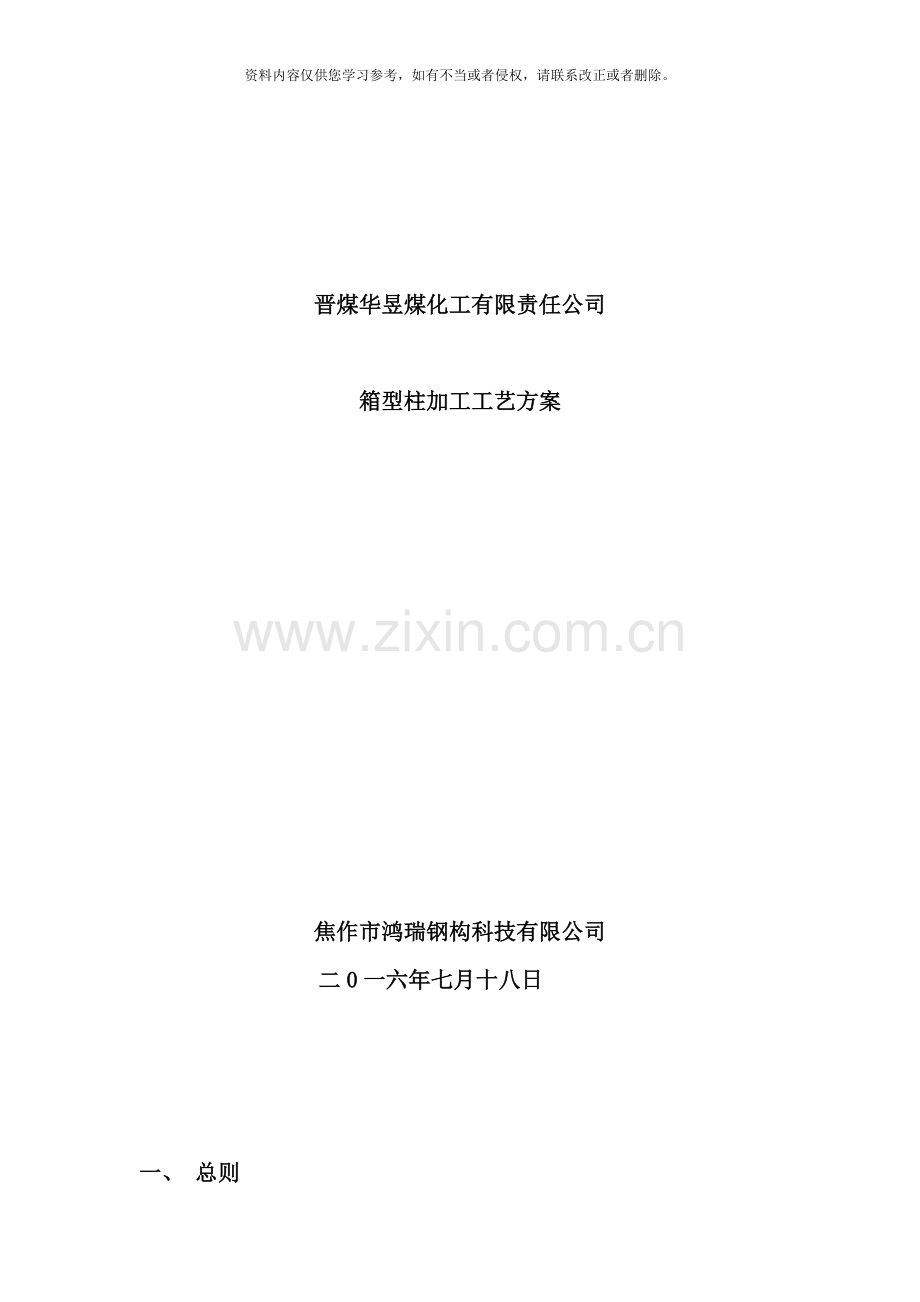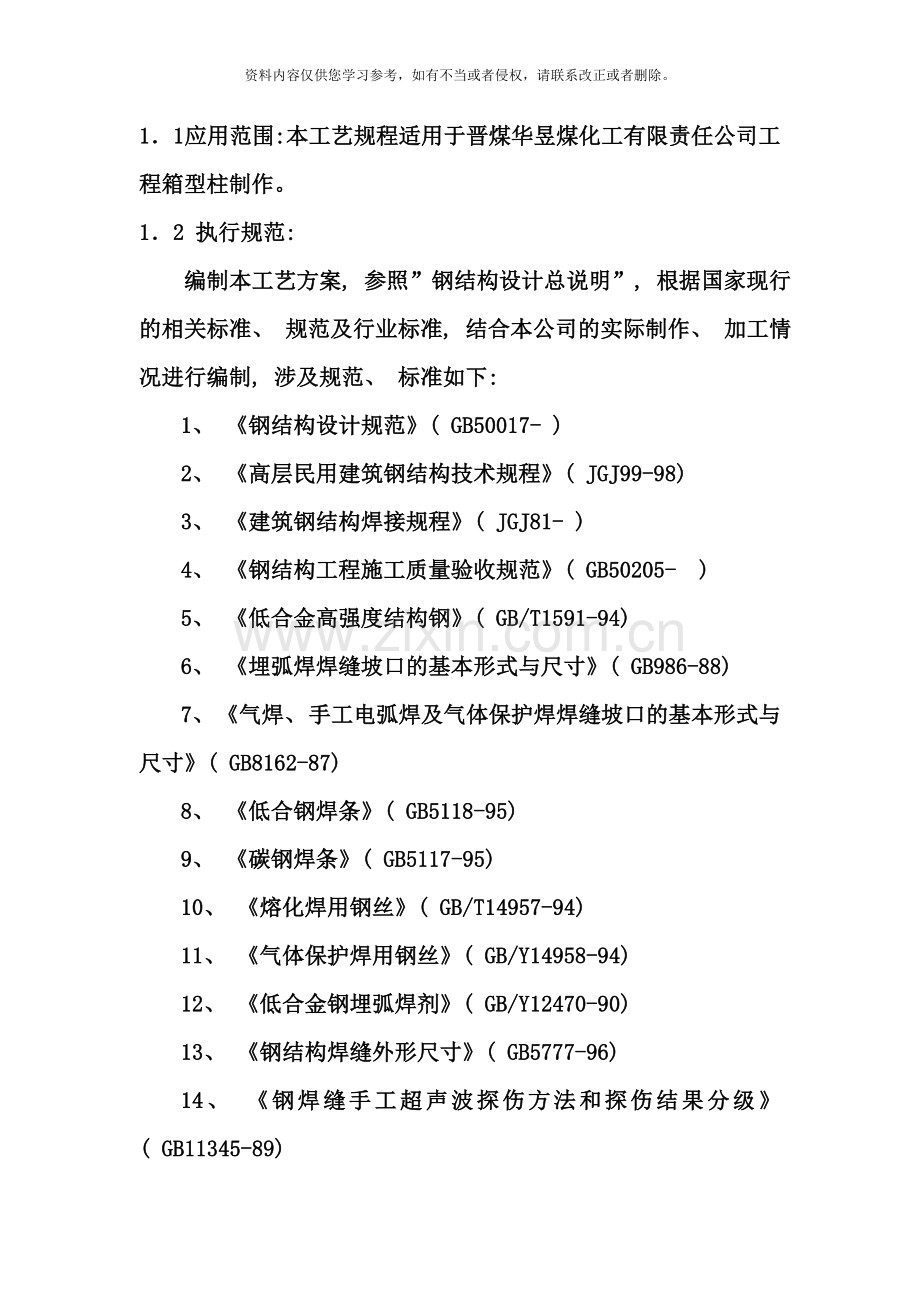 1.1 应用范围: 本工艺规程适用于晋煤华昱煤化工有限责任公司工程箱型柱制作。