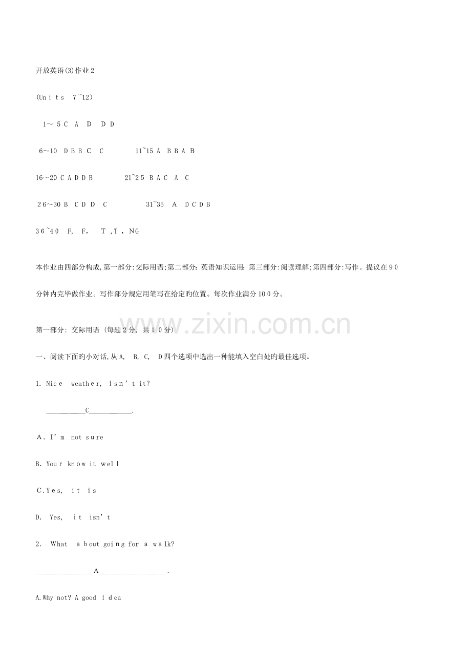开放英语(3)作业2