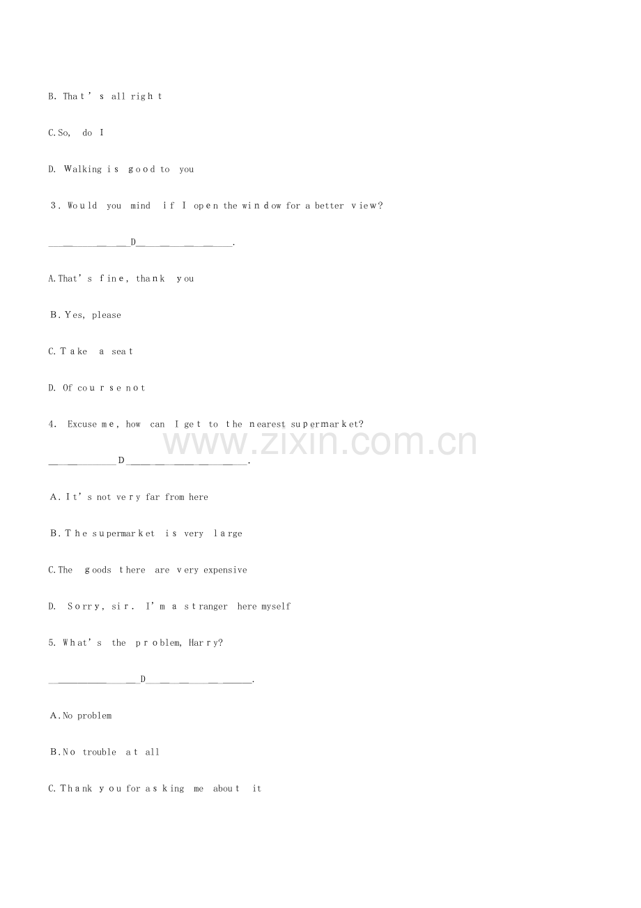 第一部分: 交际用语 (每题2分, 共10分)